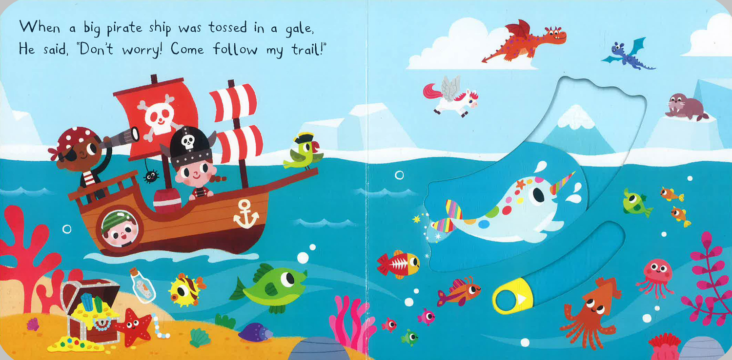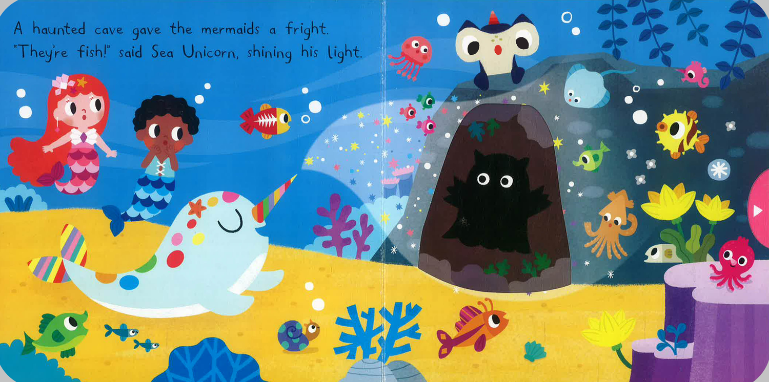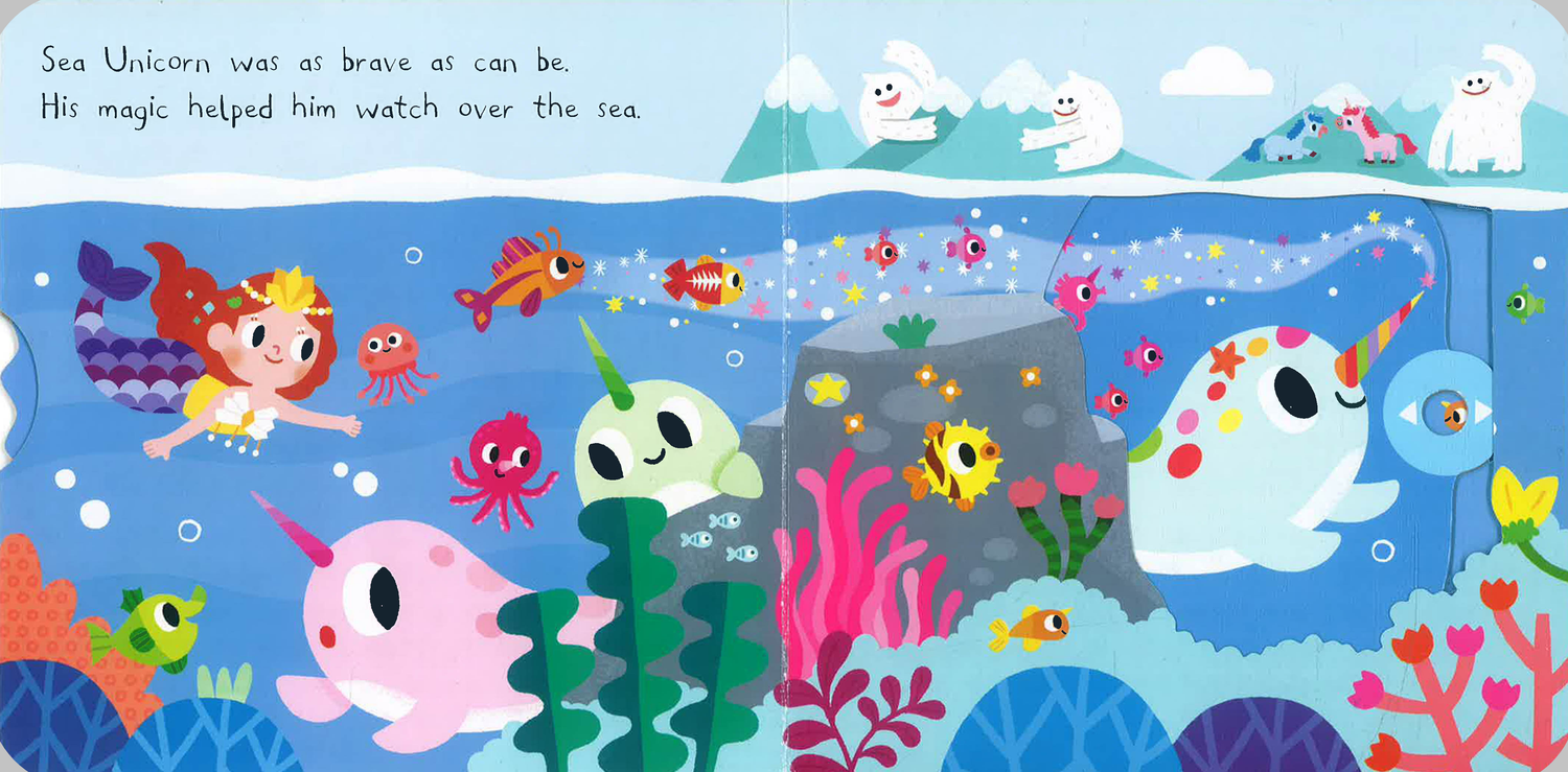 With a sparkly foil cover and push, pull and turn mechanisms, little ones will have lots of fun taking part in the sea unicorn's exciting adventure!