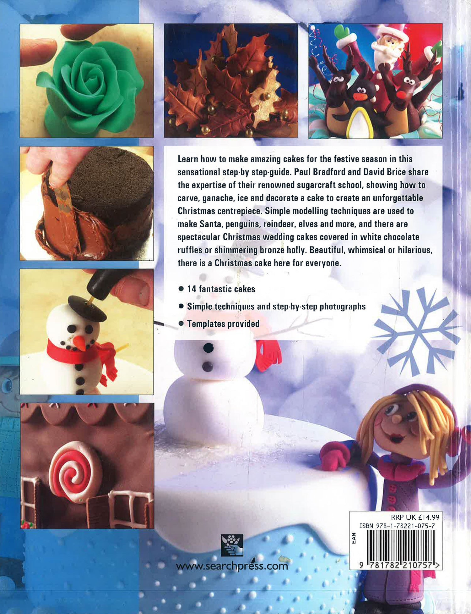 Learn how to make amazing cakes for the festive season in this sensational step-by step-guide. Paul Bradford and David Brice share the expertise of their renowned sugarcraft school, showing how to carve, ganache, ice and decorate a cake to create an unforgettable Christmas centrepiece. Simple modelling techniques are used to make Santa, penguins, reindeer, elves and more, and there are spectacular Christmas wedding cakes covered in white chocolate ruffles or shimmering bronze holly. Beautiful, whimsical or hilarious, there is a Christmas cake here for everyone.