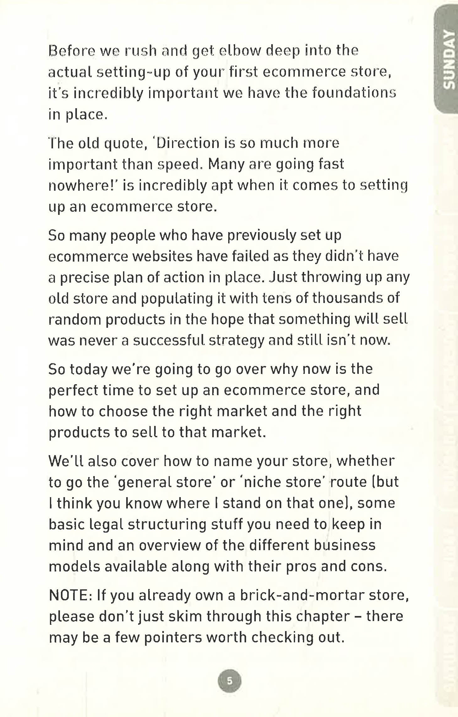 Sunday: Getting ready to start your store