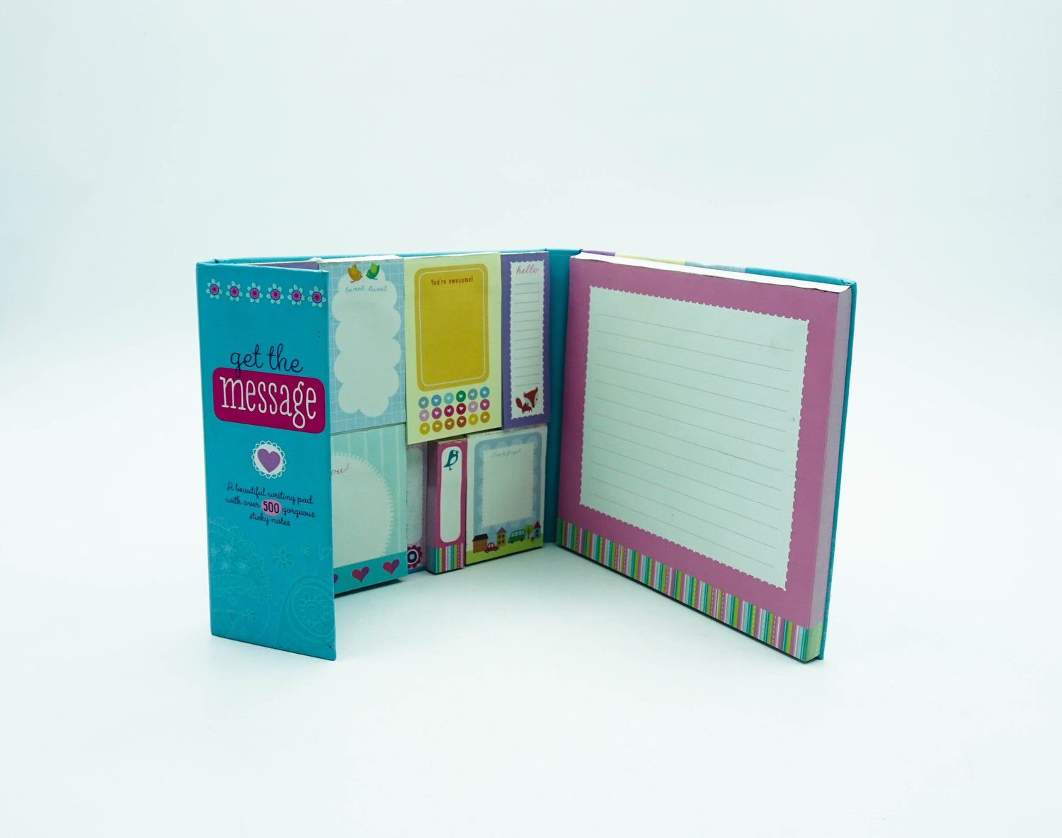 Get the Message includes stylish sticky notes and a beautiful writing pad. Choose from eight gorgeous styles of sticky notes to use wherever you want. The pull-out pad is perfect for letters to send to your friends and family.