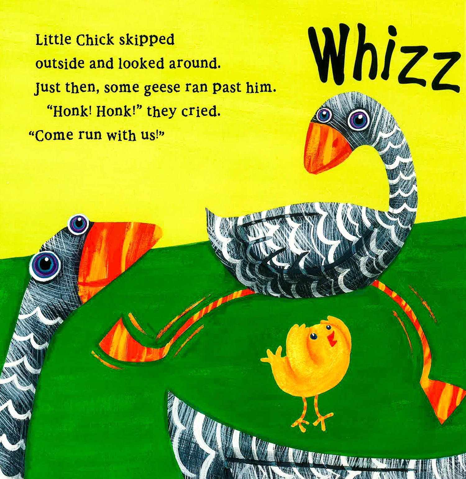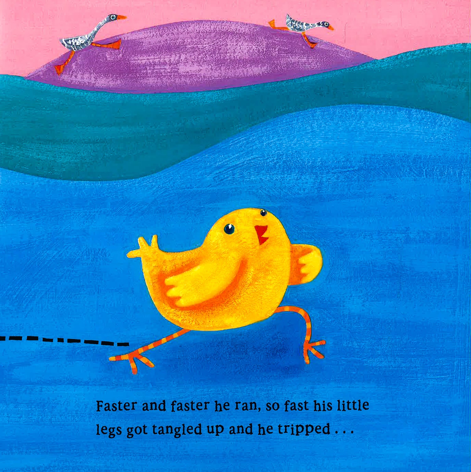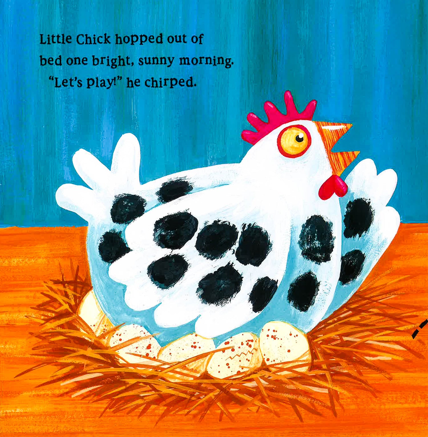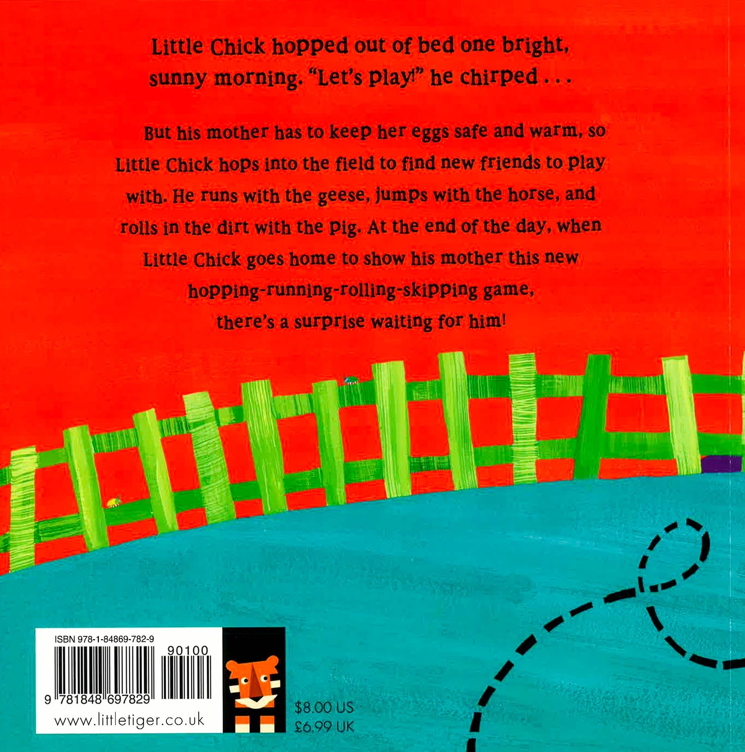 Little Chick bounced out of bed one bright sunny morning. Lets play, Mum! he chirped. But Mum has to keep her eggs safe and warm,so Little Chick hops into the farmyard to find new friends to play with. He has a wonderful bouncy-jumpy- roly-running time! And when he gets home, theres a very special surprise . . .