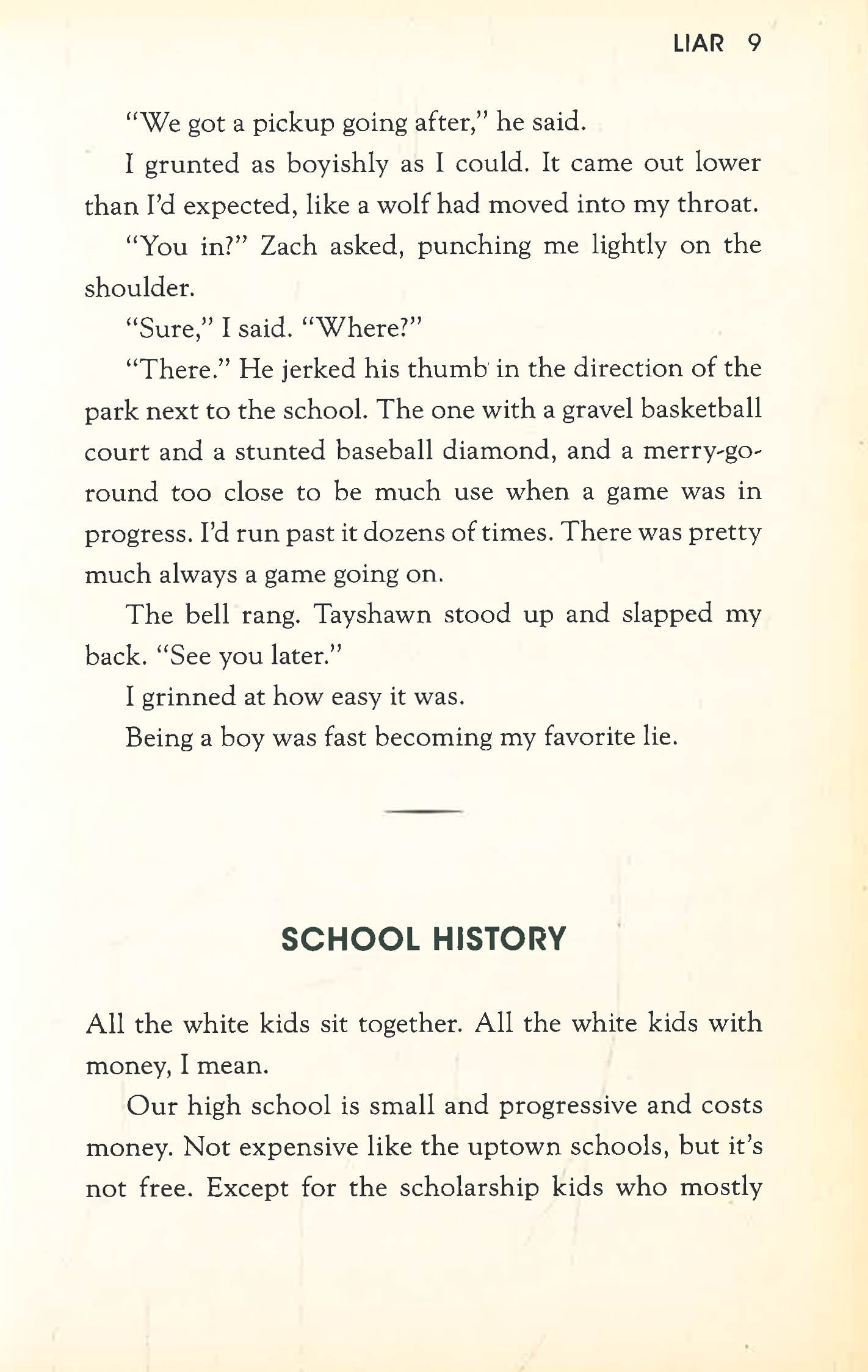 Micah is a liar. That's the one thing she won't lie about. Over the years, she's duped her classmates, her teachers, and even her parents. But when her boyfriend Zach dies under brutal circumstances, Micah sets out to tell the truth. At first the truth comes easily-because it is a lie. Other truths are so unbelievable, so outside the realm of normal, they must be a lie. And the honest truth is buried so deep in Micah's mind even she doesn't know if it's real.