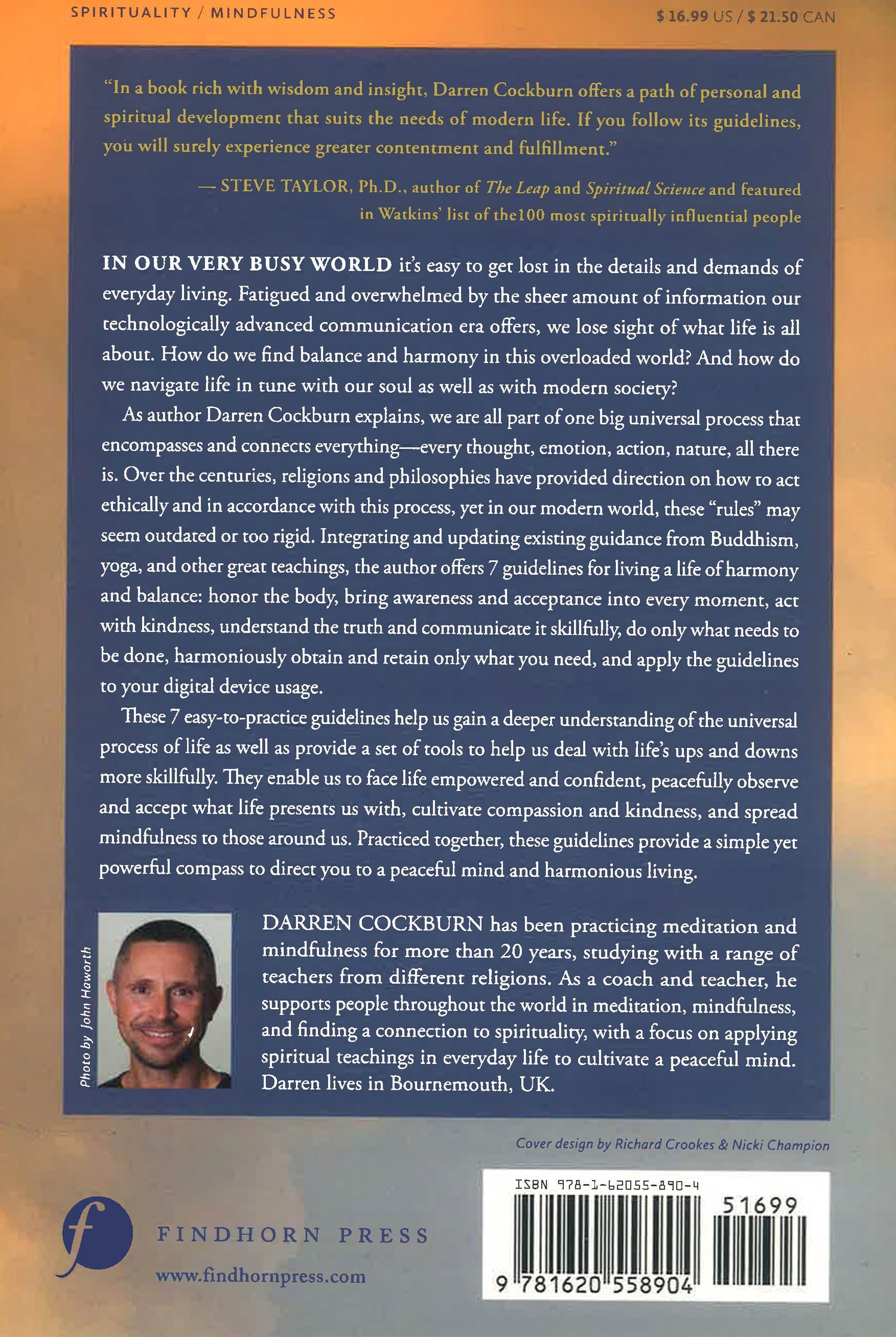 As author Darren Cockburn explains, we are all part of one big universal process that encompasses and connects everything--every thought, emotion, action, nature, all there is. Over the centuries, religions and philosophies have provided direction on how to act ethically and in accordance with this process, yet in our modern world, these “rules” may seem outdated or too rigid. Integrating and updating existing guidance from Buddhism, Yoga, and other great teachings, the author offers 7 guidelines for living a life of harmony and balance: honor the body, bring awareness and acceptance into every moment, act with kindness, understand the truth and communicate it skillfully, do only what needs to be done, harmoniously obtain and retain only what you need, and apply the guidelines to your digital device usage. He illustrates how and why each of these guidelines hold value, revealing their interconnections, and explains how to implement them practically in daily life, sharing real-life examples as well as practices to support each guideline and deepen your existing spiritual practice.