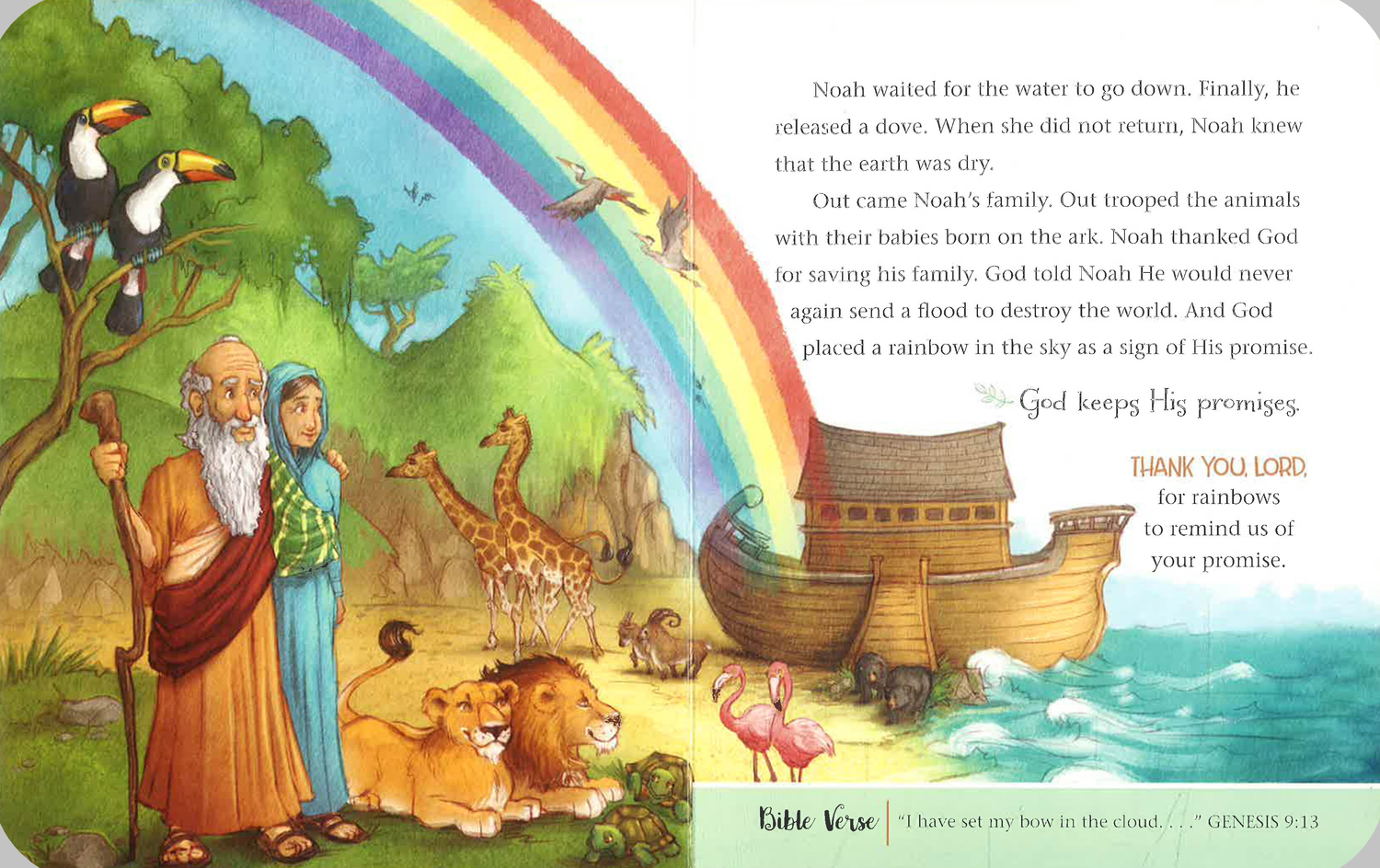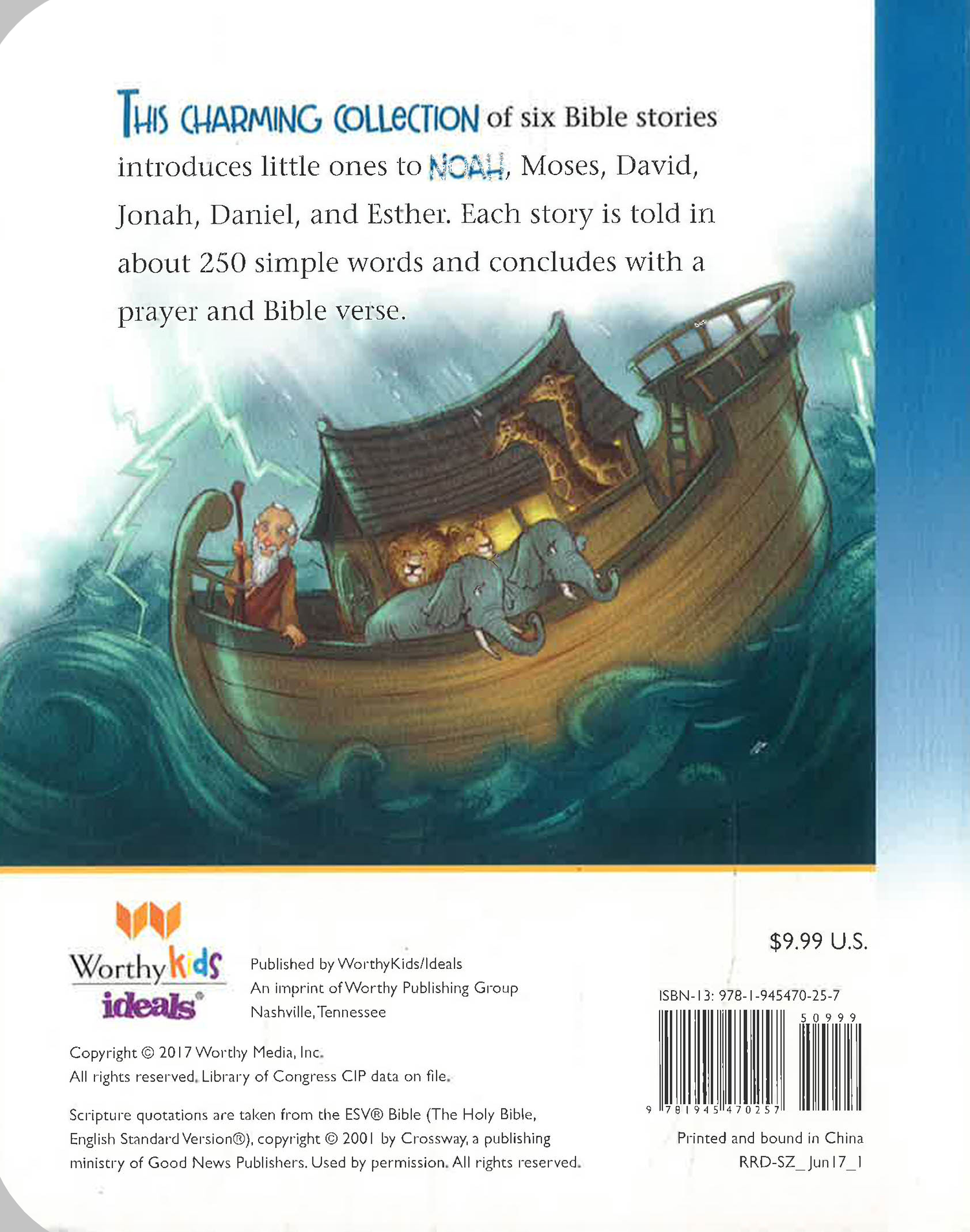 This classic collection will introduce children to six favorite, age-appropriate Old Testament Bible stories, including Noah and the ark, David and Goliath, and the story of Esther. Each story is told in fewer than 250 simple words that toddlers can understand and concludes with a one-sentence summary, a one-sentence prayer, and a short Bible verse. The bright artwork focuses on the land, the people, and the natural world of the Old Testament.