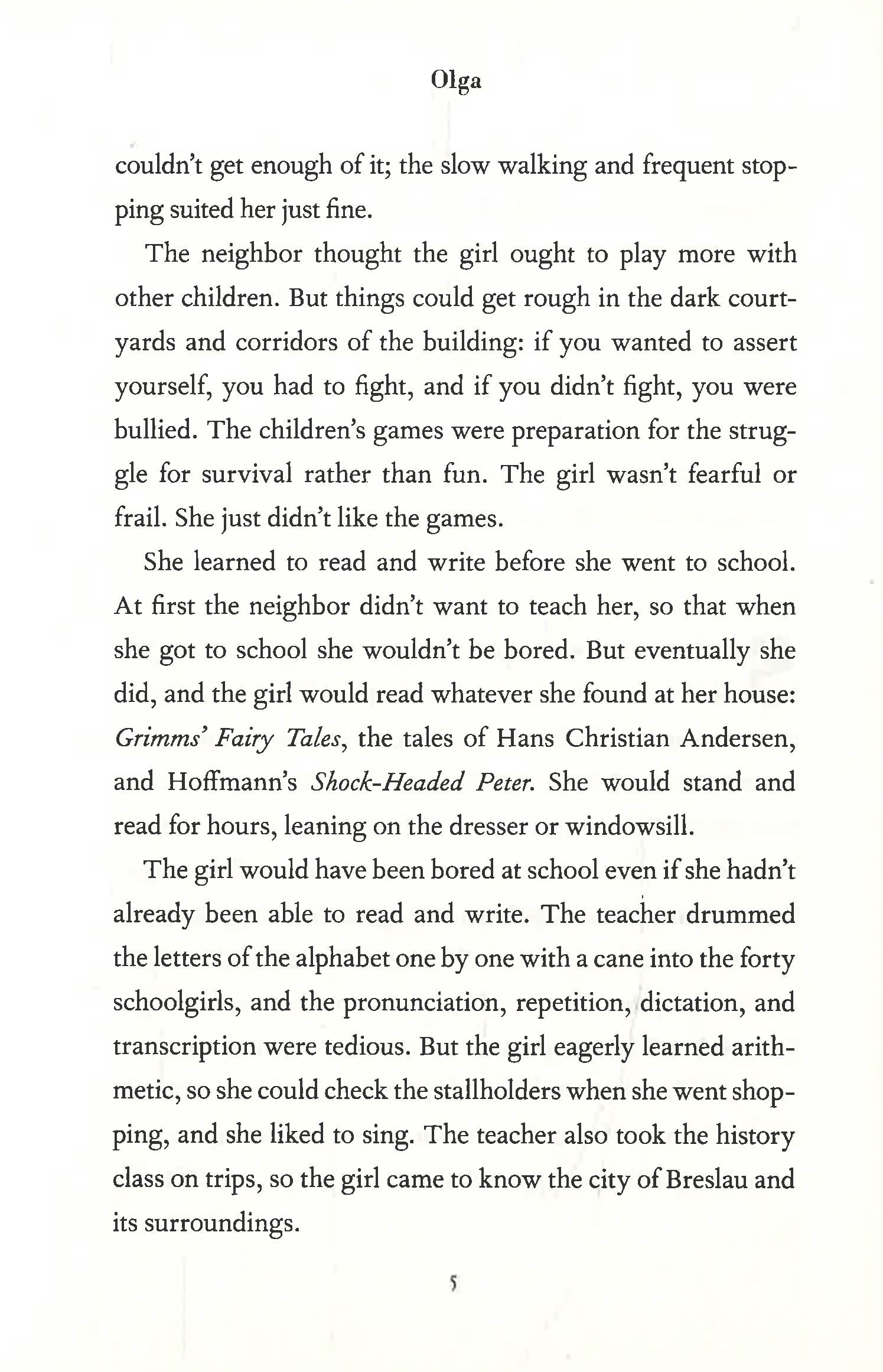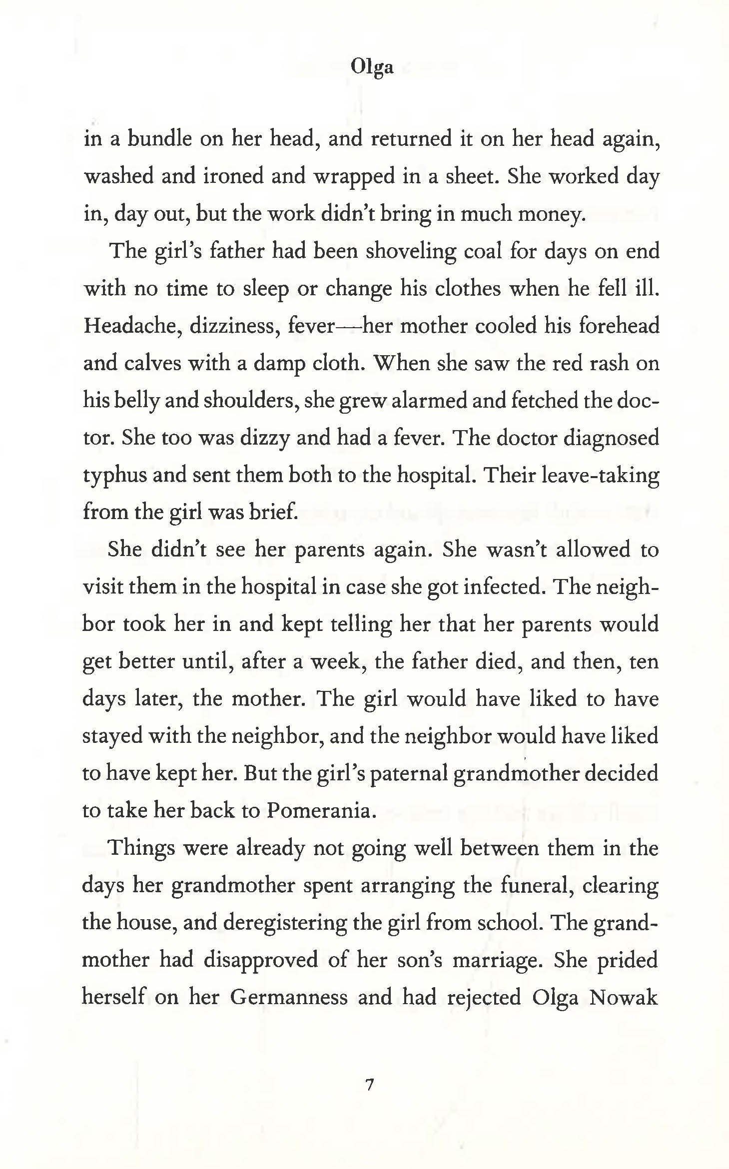Abandoned by her parents, young Olga is raised by her grandmother in a Prussian village in the early years of the twentieth century. Smart and precocious, endearing but uncompromising, she fights against ingrained chauvinism to find her place in a world run by lesser men.
