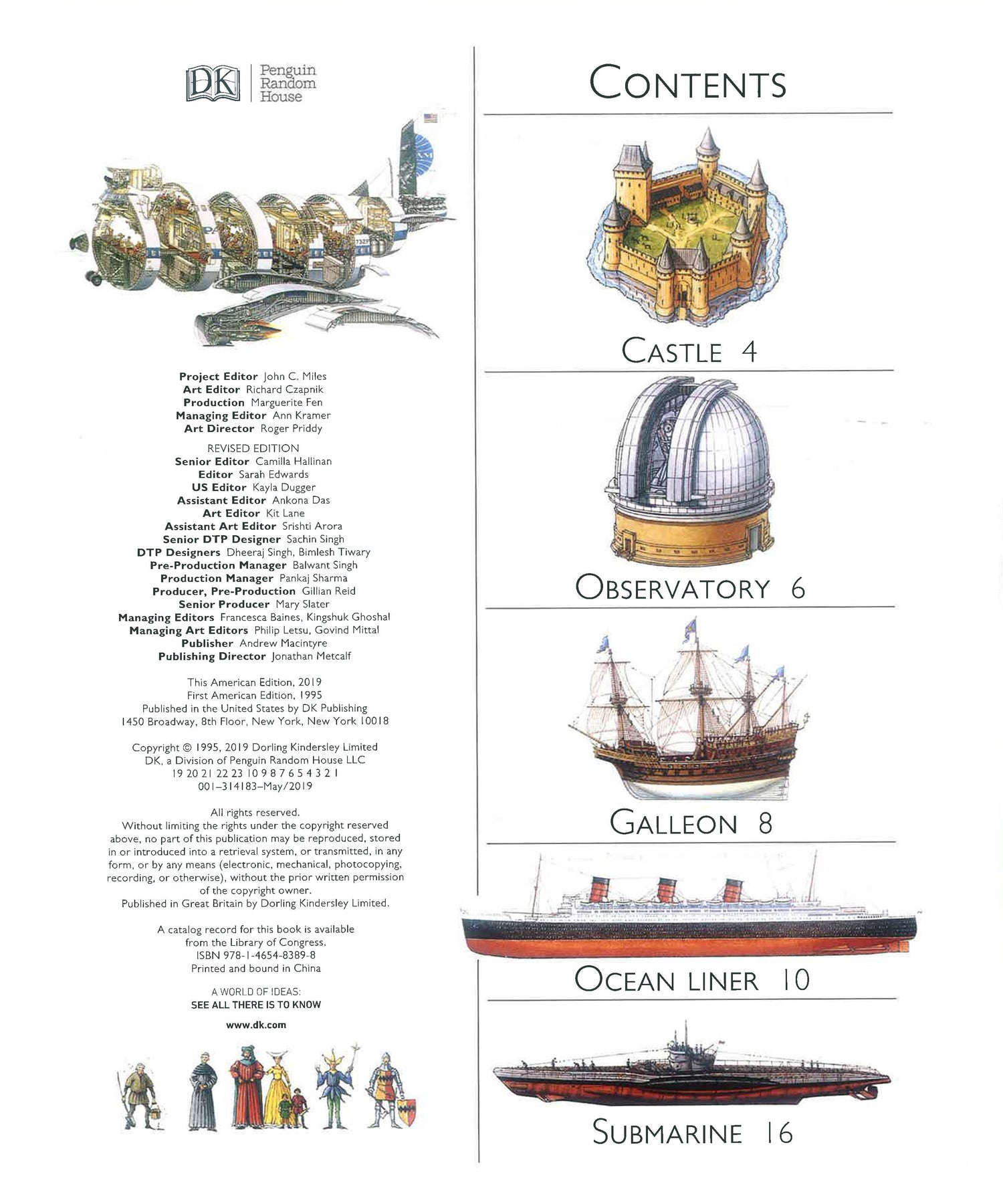 Whether it's a Spanish galleon or a medieval castle, each cross-section slice or exploded view reveals what's going on inside. See the people swarming inside the Empire State Building, the workers busy backstage at the opera house, and where the crew sleeps on a jumbo jet. Included also are two impressive foldouts showing an ocean liner and a steam train.