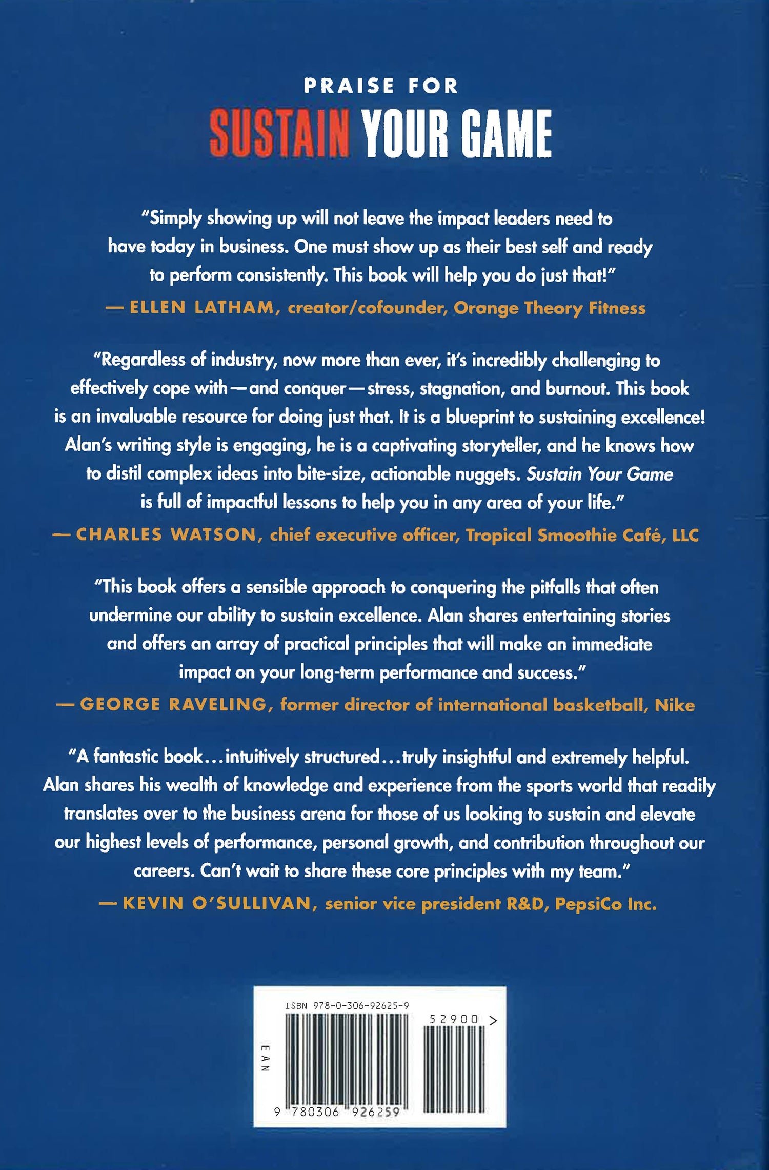 This book is for high performers who want to learn practical strategies and action steps on how to sustain their game across all three timelines. It assembles invaluable advice and lessons from successful athletes, entrepreneurs, social scientists, journalists, CEOs, motivational speakers, business coaches, and consultants, as well as Alan’s own personal stories.
