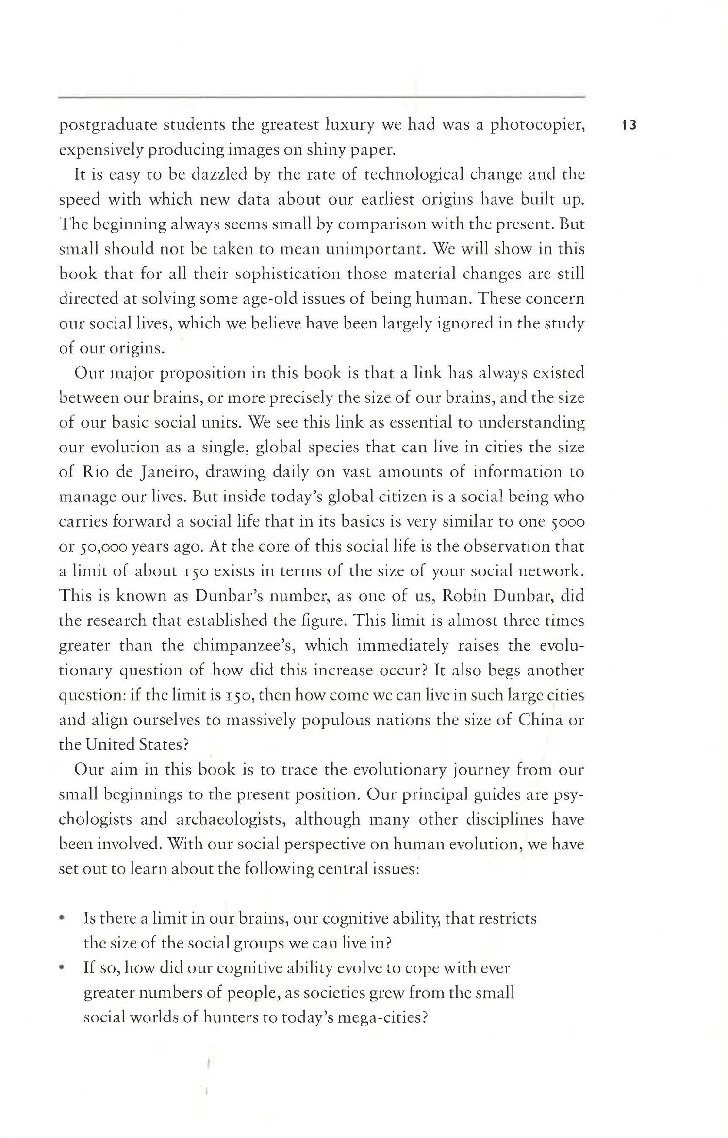 The results are profound; not just for the study of the past but for appreciating why we conduct our social lives in ways, and at scales, that are familiar to all of us. But such basic familiarity raises a dilemma. When surrounded by the myriad technical and cultural innovations that support our global, urbanized lifestyles we can lose sight of the small social worlds we actually inhabit and that can be traced deep into our ancestry. So why do we need art, religion, music, kinship, myths, and all the other facets of our over-active imaginations if the reality of our effective social worlds is set by a limit of some one hundred and fifty partners (Dunbar’s number) made of family, friends, and useful acquaintances? How could such a social community lead to a city the size of London or a country as large as China? Do we really carry our hominin past into our human present? It is these small worlds, and the link they allow to the study of the past that forms the central point in this book. 40 black-and-white illustrations