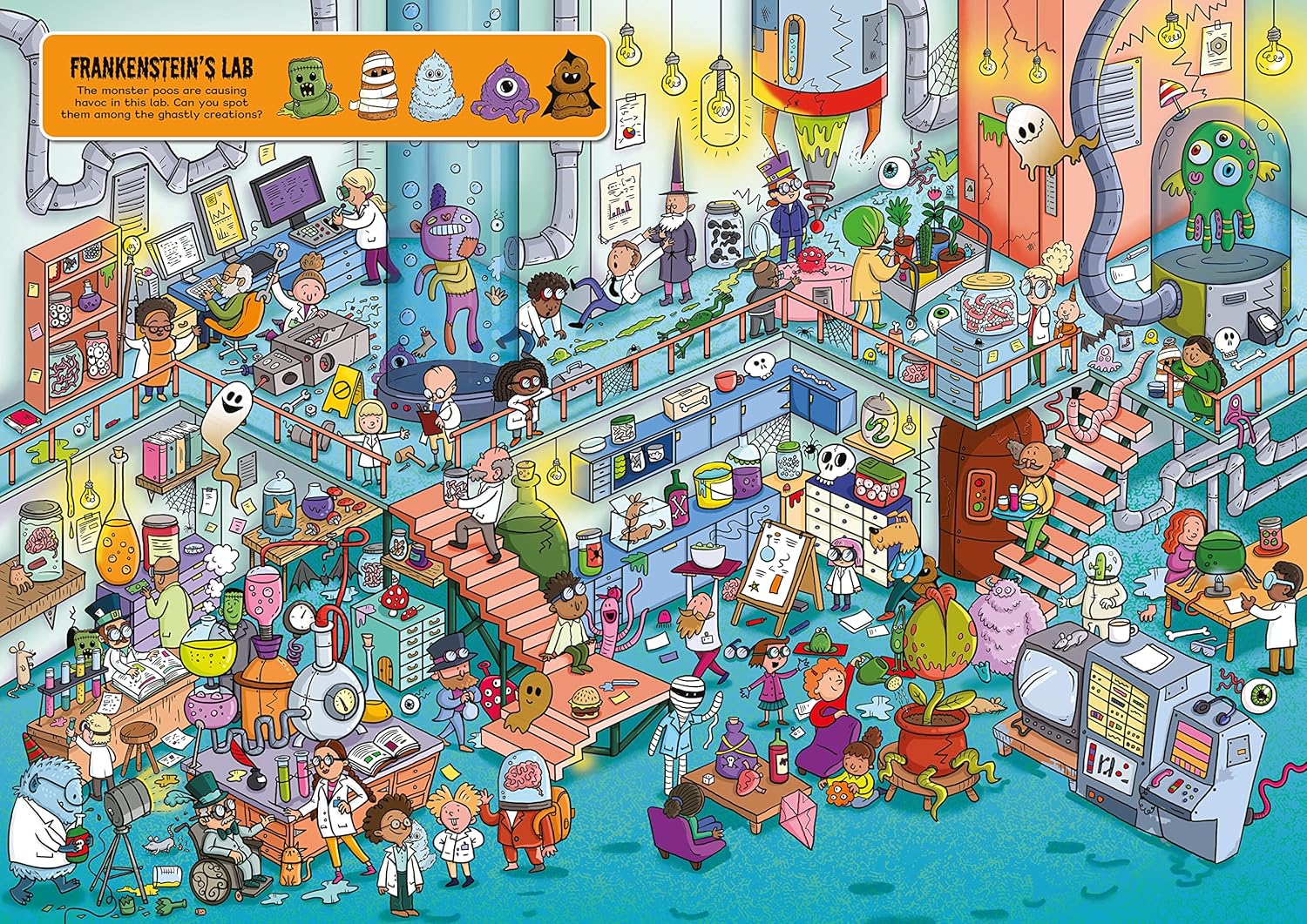 The monster poos are on the loose! Can you find them hiding in this slimy search and find? Look for them in the crazy scientist's laboratories, dank dungeons and haunted mansions... if you dare!