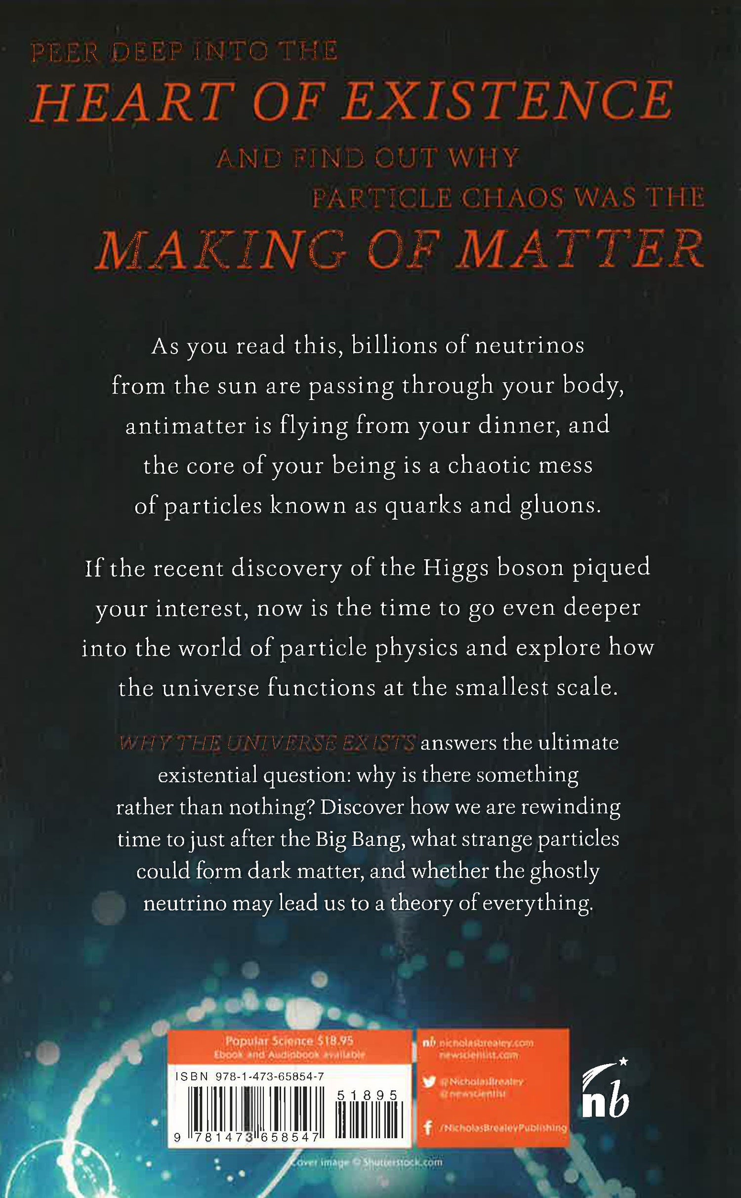 Following the recent discovery of the Higgs Boson, WhyThe Universe Exists takes you deeper into the world of particle physics, exploring how the universe functions at the smallest scales.