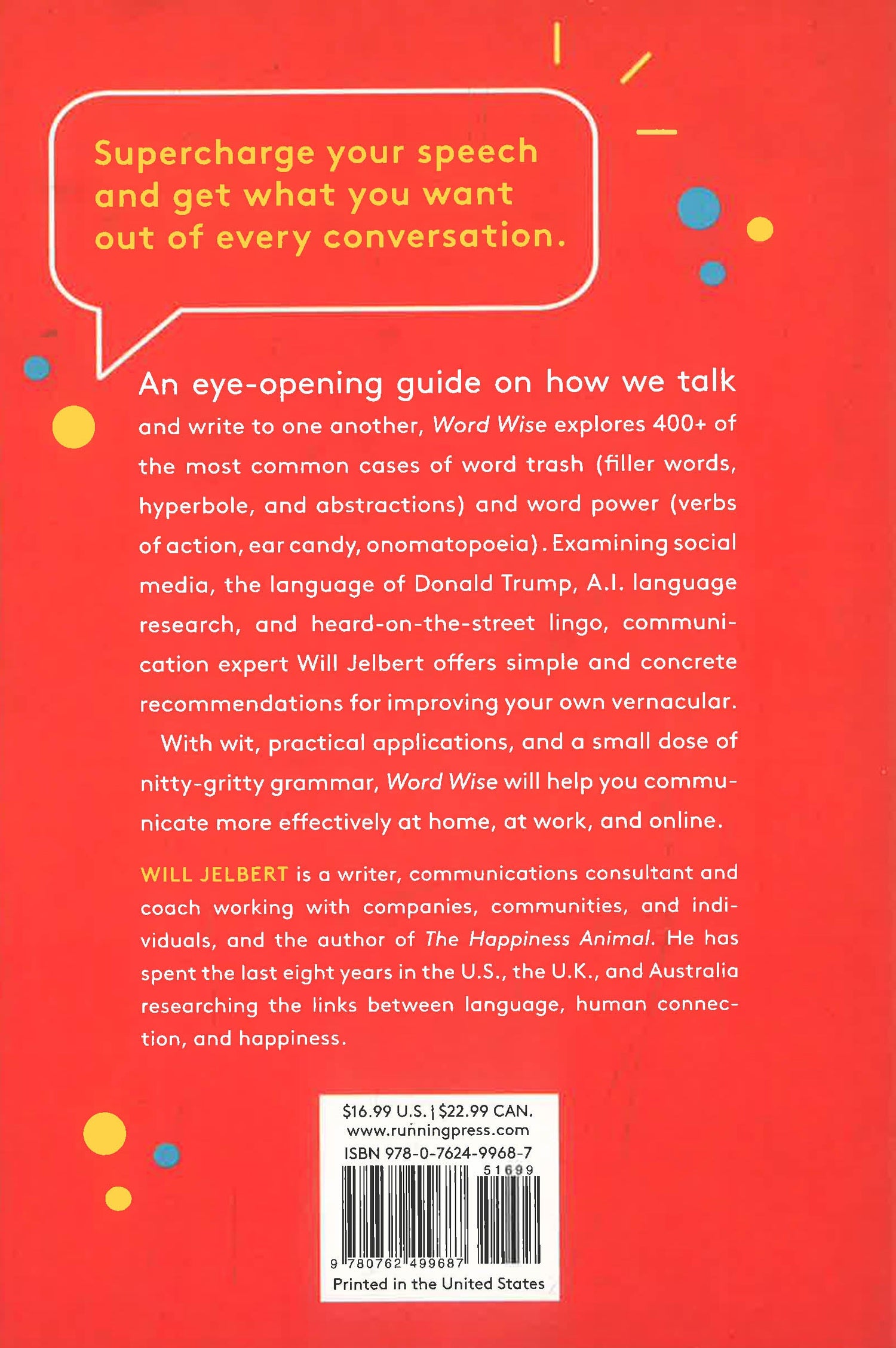An eye-opening guide on how we talk and write to one another, Word Wise explores 400+ of the most common cases of word trash (filler words, hyperbole, and abstractions) and word power (verbs of action, ear candy, onomatopoeia). Examining social media, the language of Donald Trump, AI language research, and heard-on-the-street lingo, communication expert Will Jelbert offers simple and concrete recommendations for improving your own vernacular.