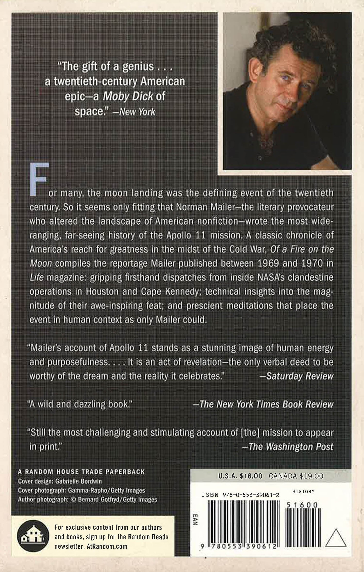 For many, the moon landing was the defining event of the twentieth century. So it seems only fitting that Norman Mailer--the literary provocateur who altered the landscape of American nonfiction--wrote the most wide-ranging, far-seeing chronicle of the Apollo 11 mission. A classic chronicle of America's reach for greatness in the midst of the Cold War, Of a Fire on the Moon compiles the reportage Mailer published between 1969 and 1970 in Life magazine: gripping firsthand dispatches from inside NASA's clandestine operations in Houston and Cape Kennedy; technical insights into the magnitude of their awe-inspiring feat; and prescient meditations that place the event in human context as only Mailer could. Praise for Of a Fire on the Moon "The gift of a genius . . . a twentieth-century American epic--a Moby Dick of space."--New York "Mailer's account of Apollo 11 stands as a stunning image of human energy and purposefulness. . . . It is an act of revelation--the only verbal deed to be worthy of the dream and the reality it celebrates."--Saturday Review "A wild and dazzling book."--The New York Times Book Review "Still the most challenging and stimulating account of [the] mission to appear in print."--The Washington Post Praise for Norman Mailer "[Norman Mailer] loomed over American letters longer and larger than any other writer of his generation."--The New York Times "A writer of the greatest and most reckless talent."--The New Yorker "Mailer is indispensable, an American treasure."--The Washington Post "A devastatingly alive and original creative mind."--Life "Mailer is fierce, courageous, and reckless and nearly everything he writes has sections of headlong brilliance."--The New York Review of Books "The largest mind and imagination [in modern] American literature . . . Unlike just about every American writer since Henry James, Mailer has managed to grow and become richer in wisdom with each new book."--Chicago Tribune "Mailer is a master of his craft. His language carries you through the story like a leaf on a stream."--The Cincinnati Post *This book may have remainder mark*