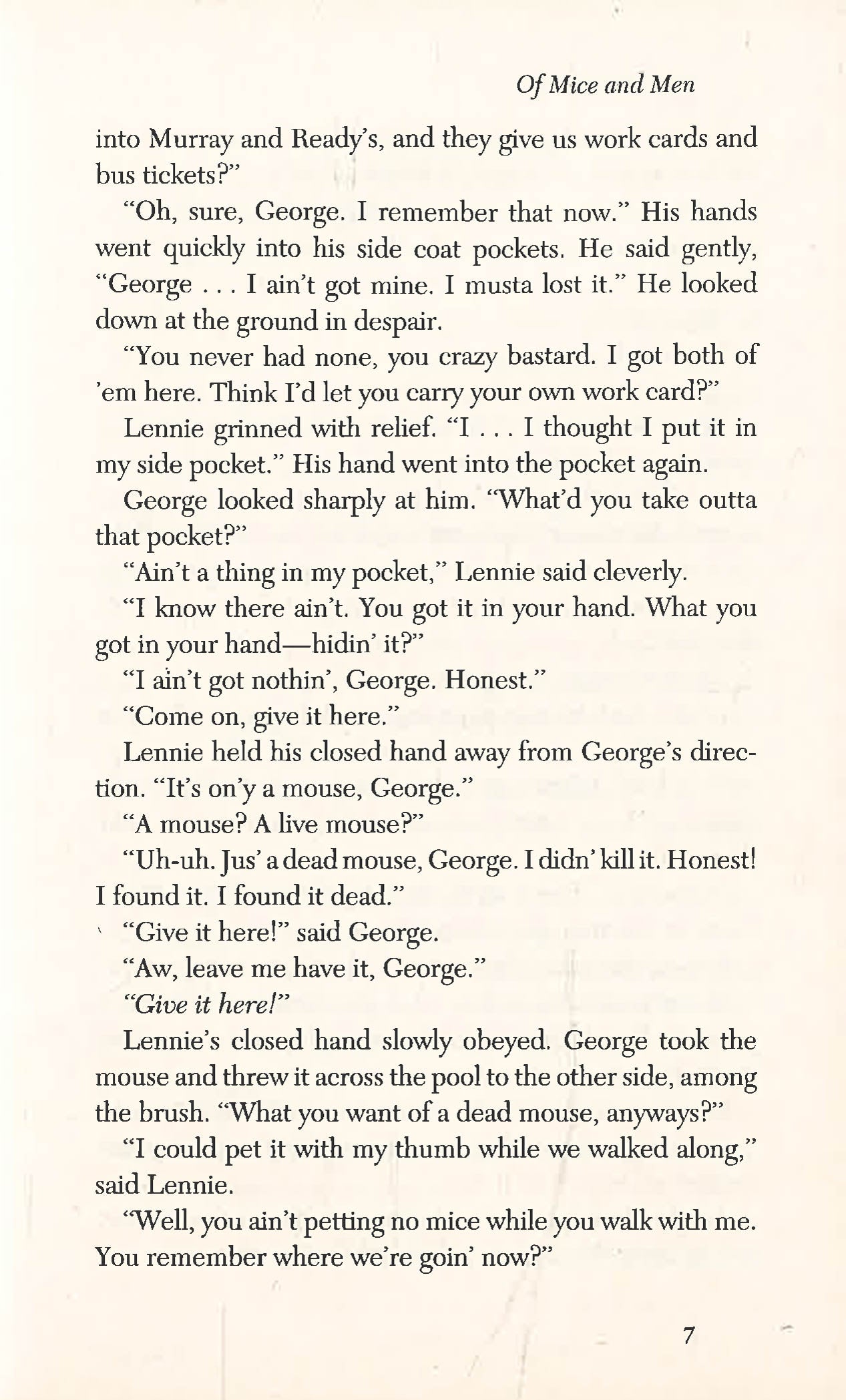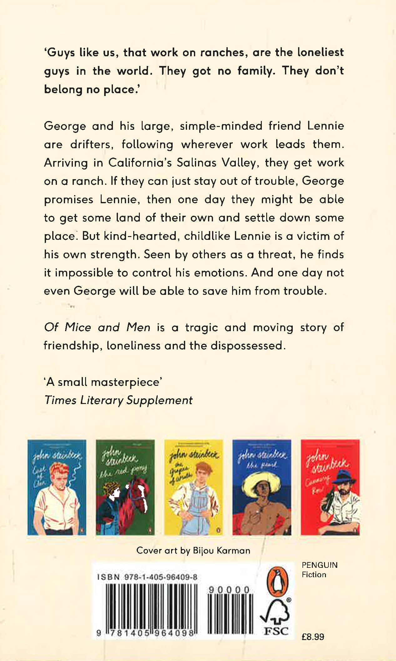 Seen by others as a threat, he finds it impossible to control his emotions. And one day not even George will be able to save him from trouble. Of Mice and Men is a tragic and moving story of friendship, loneliness and the dispossessed.