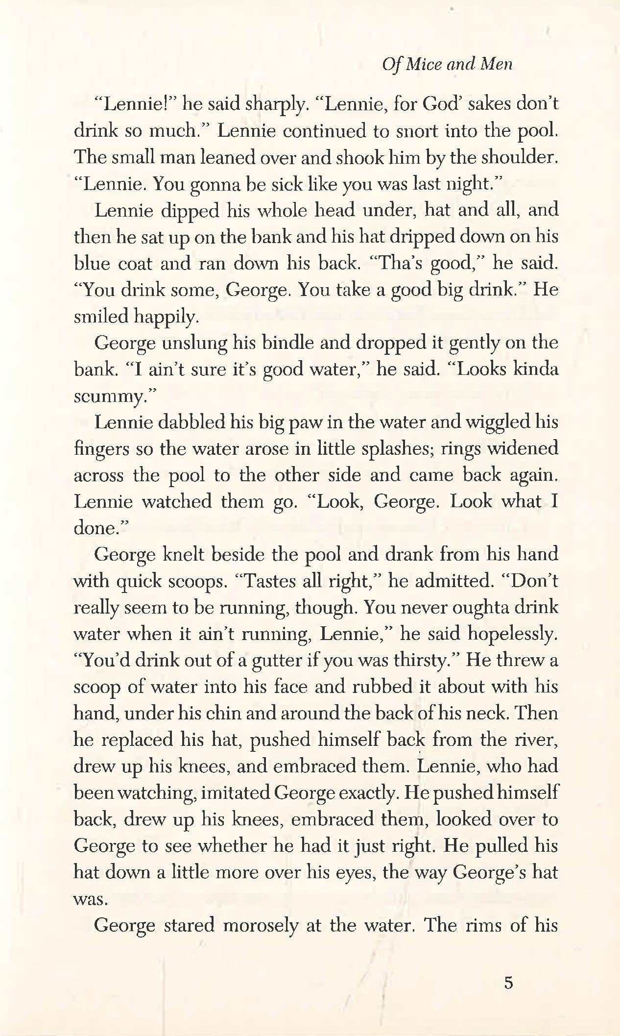 ‘Guys like us, that work on ranches, are the loneliest guys in the world. They got no family. They don’t belong no place.’George and his large, simple-minded friend Lennie are drifters, following wherever work leads them.