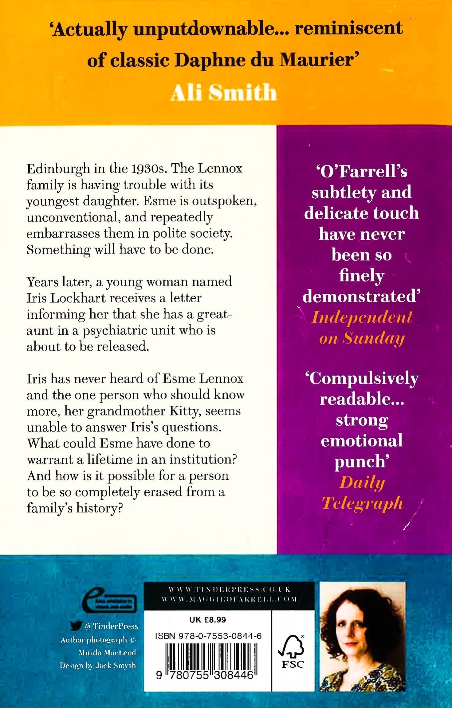 Iris has never heard of Esme Lennox and the one person who should know more, her grandmother Kitty, seems unable to answer Iris's questions. What could Esme have done to warrant a lifetime in an institution? And how is it possible for a person to be so completely erased from a family's history?