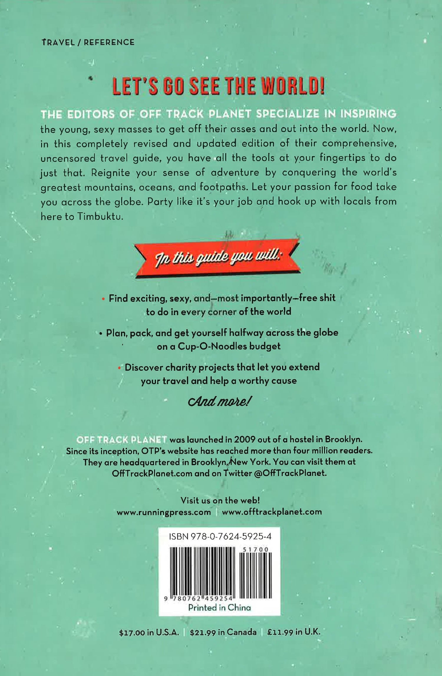 Reaching over four million online readers, Off Track Planet brings back its distinct voice and edgy style with this updated edition of Off Track Planet's Travel Guide for the Young, Sexy, and Broke. With 20 percent brand-new material and 40 to 50 new photos, this revised edition explores the most interesting destinations around the world and is both inspiring and informative