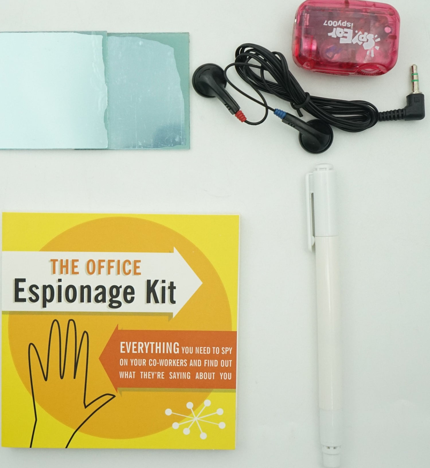 As every successful CEO knows, the office is a murky world of ambition, backstabbing, and outright greed. To get ahead, you need to get informed, and that's why you need "The Office Espionage Kit". Keep a check on your rivals before they keep a check on you, and stay one step ahead of the game. But remember the cardinal rule of all good espionage - don't get caught!