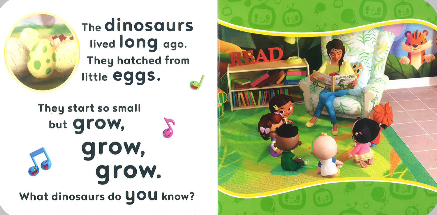 Join in at home naming your favourite dinosaurs. Singing along to The Dinosaur Song is a great way to share a first learning experience with young children.