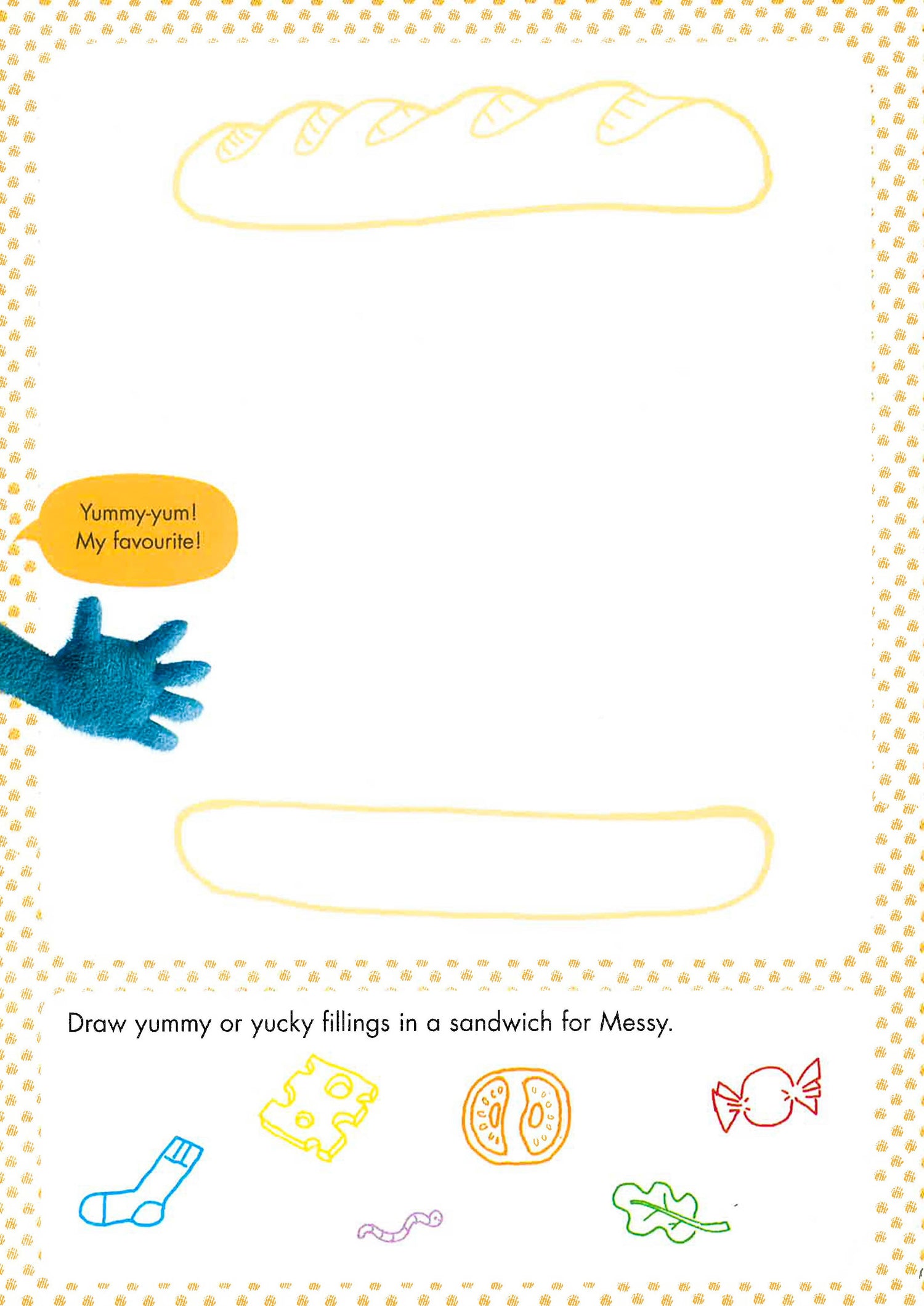 Set off on a doodle adventure with Messy, a sock-eating monster who loves jokes and science. Scribble, colour, fold and doodle your way through this imaginative activity pad and then tear out the pages and pin them up on the wall for everyone to see! Draw a giant sandwich for Messy, hide paper socks for him to find and join up dots for a big surprise!