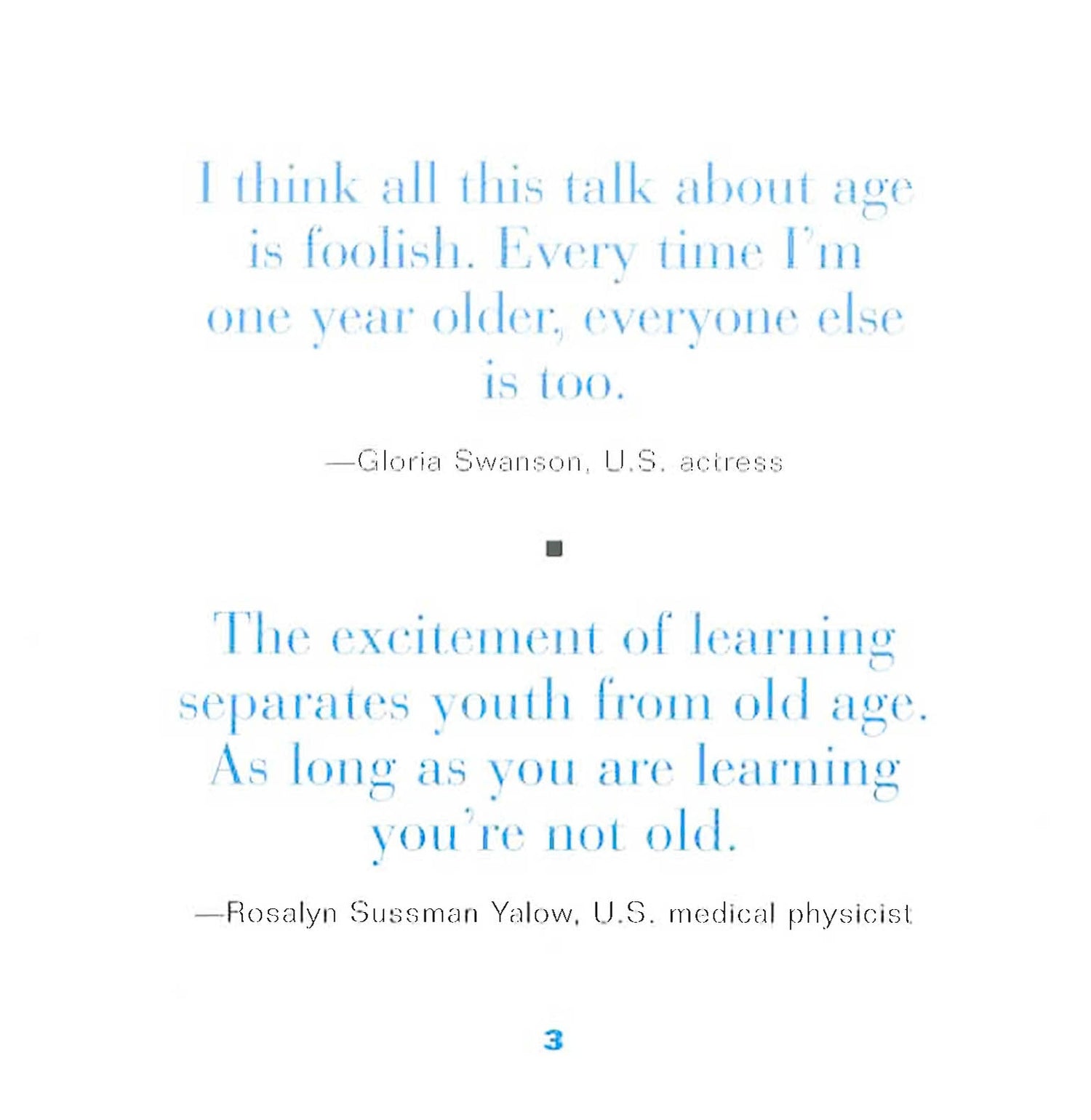 Everyone has a choice about how he or she defines "old," and now readers can find some of the best things ever said about the subject in Old Age Is Always 15 Years Older Than I Am. This quotation collection is wise and warm, witty and wild. It includes everything from President James A. Garfield's thoughts on the spirit - and wrinkles - to Bill Cosby's musings on senility. Everyone has something to say about aging, and this book delivers the wisdom of the ages with the energizing spirit of youth.