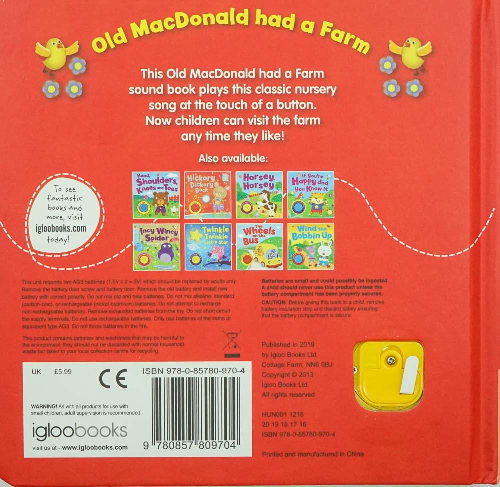 This Old MacDonald had a Farm sound book plays this classic nursery song at the touch of a button.Now children can visit the farm any time they like!