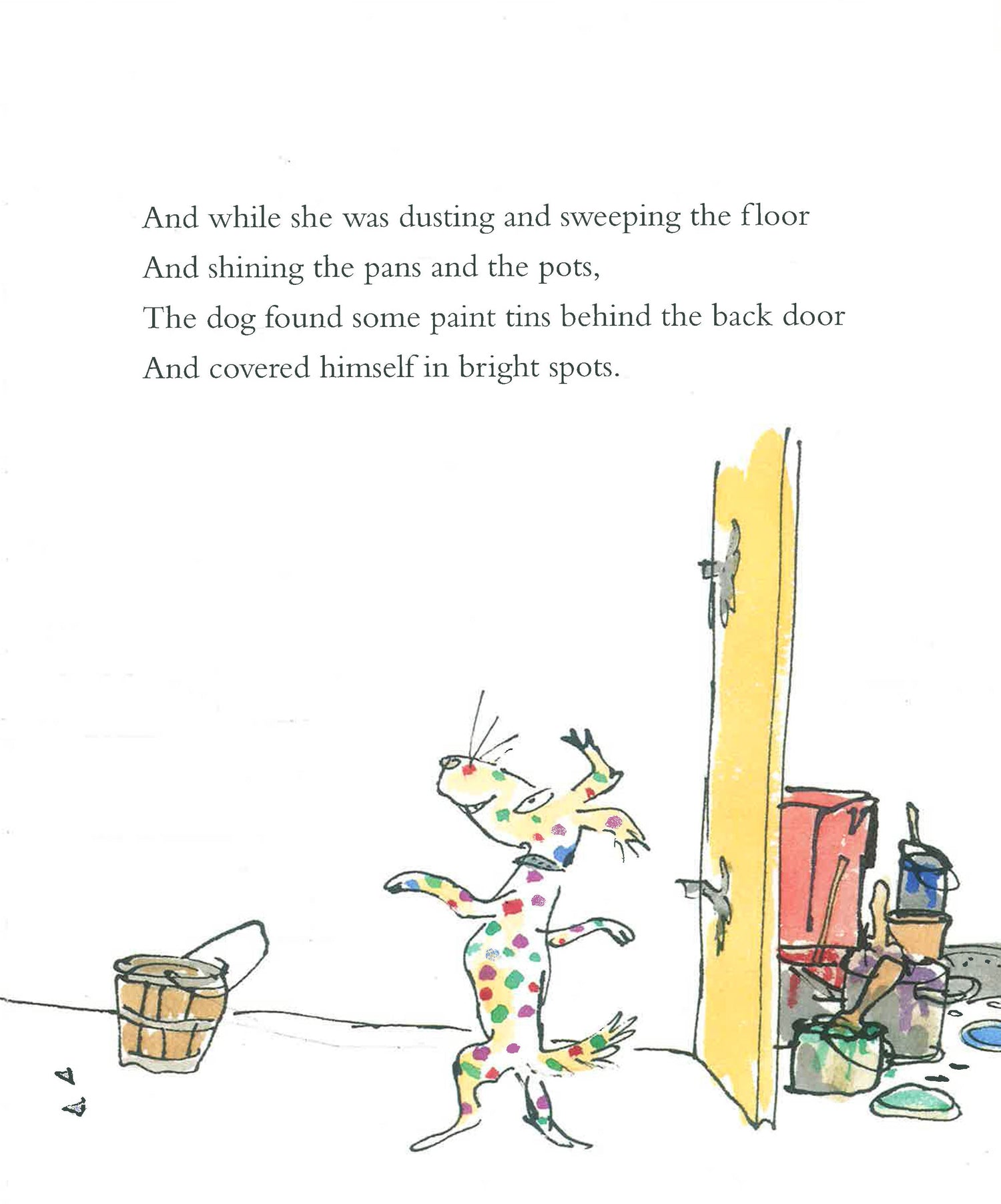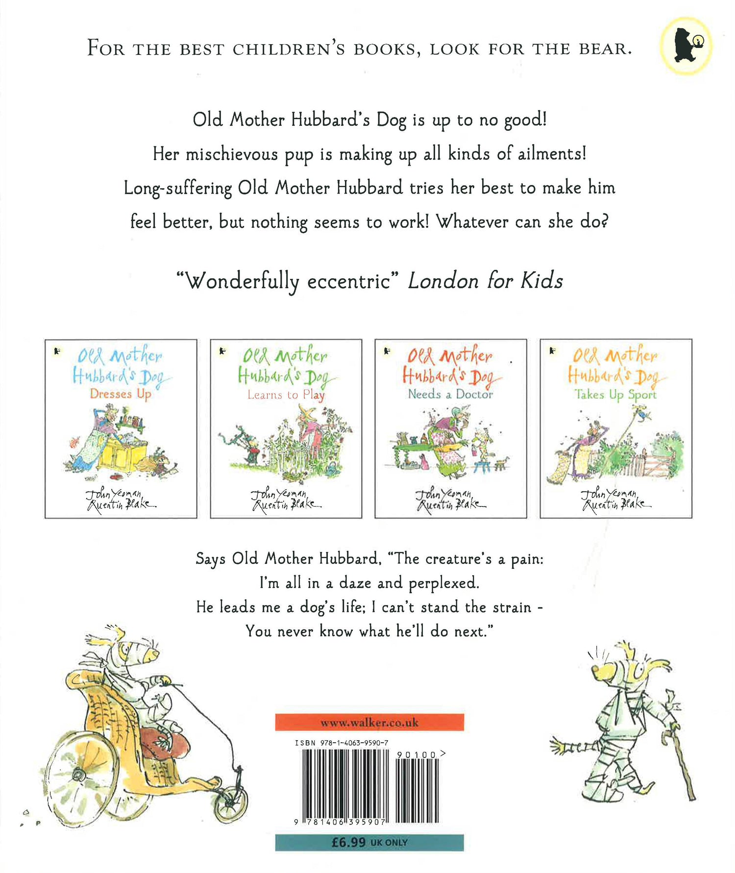 Old Mother Hubbard's mischievous pup is feeling under the weather and makes up all kinds of ailments! He paints himself with colourful spots, bandages himself from nose to tail and hiccoughs until the windows shake! Long-suffering Old Mother Hubbard tries her best to make him feel better, but nothing seems to work! Whatever can she do?