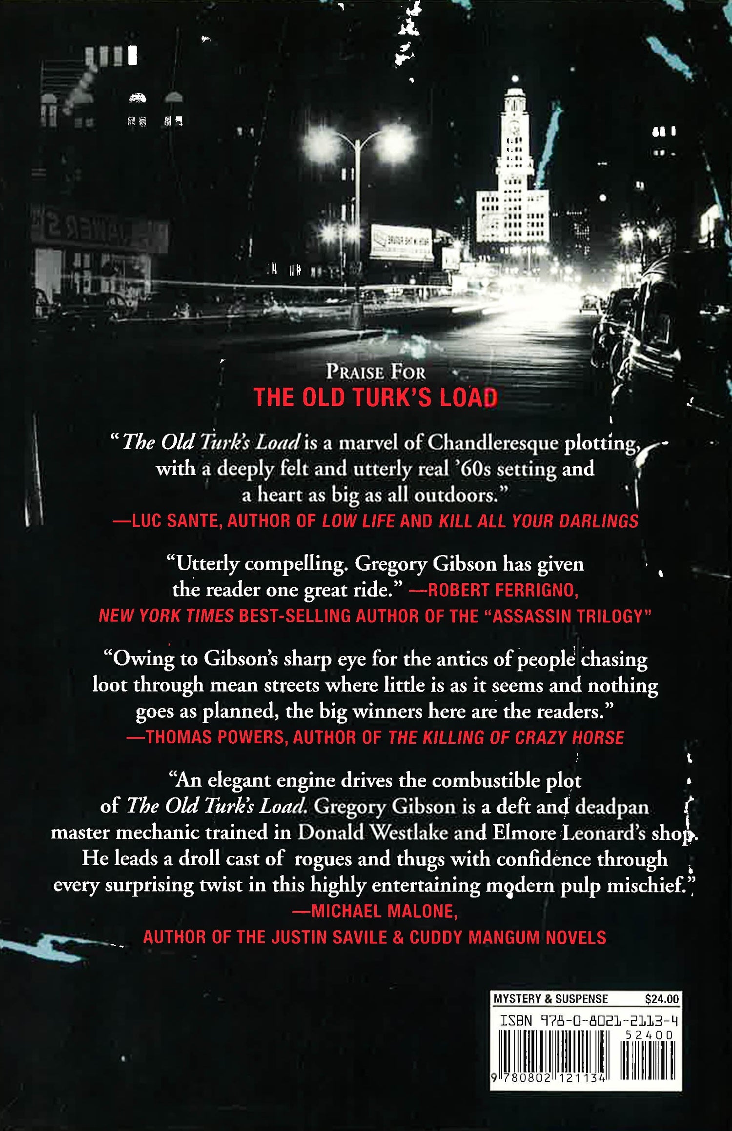 Angelo DiNoto is the most powerful crime lord in New Jersey, his empire bolstered by pure heroin imported from an old Turkish farmer. But when a five million dollar shipment goes missing during the Newark riots of 1967, DiNoto isn't the only one willing to turn over every rock--and bust some heads, arms, legs-- to locate it. Shady developer Richard Mundi sees the heroin as the key to replenishing his fading business with new capital. His daughter Gloria, literally in bed with a band of wannabe revolutionaries, believes the lucrative stash might be her ticket out of her father's domain. A longtime postal clerk disfigured by cancer thinks finding the drugs is the perfect cap to a failed life. With an Elmore Leonard-esque cast of characters rampaging across Newark and Manhattan, The Old Turk's Load is a twisty historical crime novel whose disparate thread leads directly to an unforgettable showdown over the "old Turk's load."