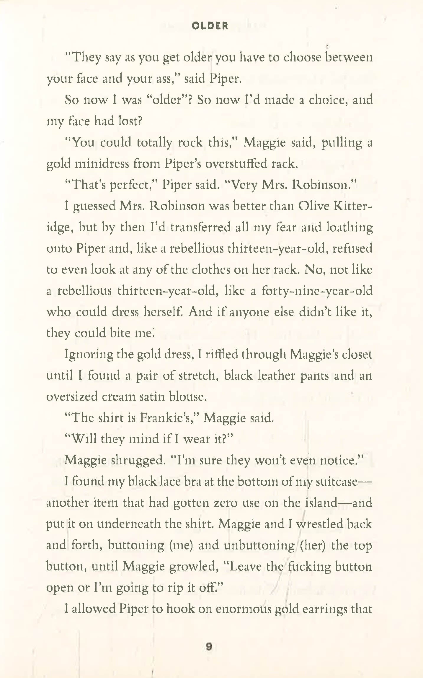 Liza never dreamed that anyone would be interested in her life, let alone buy a book about it. But when she publishes a thinly veiled novel about a woman posing as a millennial, called Younger, not only is the book a hit, but her old friend Kelsey wants to turn into a TV show.