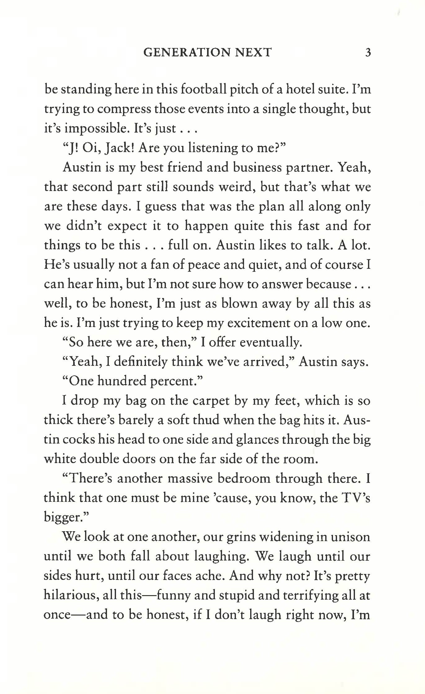 Things haven't been easy for Jack recently - life as a teenager has its ups and downs. But when he meets a new group of friends, who are every bit as geek as they are chic, his luck seems to be changing. Each of the group is talented and when they pool together to create Generation Next, an incredible new kind of social media platform, it's clear that they're on to something special. What if your Instagram account grew by hundreds of thousands of followers overnight, and big companies were fighting each other to offer you photoshoots? When GenNext suddenly goes viral, Jack and his friends are thrust into a crazy world of fame which is as terrifying as it is awesome. Because someone out there is determined to trip Jack up at every step. If he doesn't stop them, soon everyone he cares about - his friends, his family, and the girl he's falling for - will be in danger...