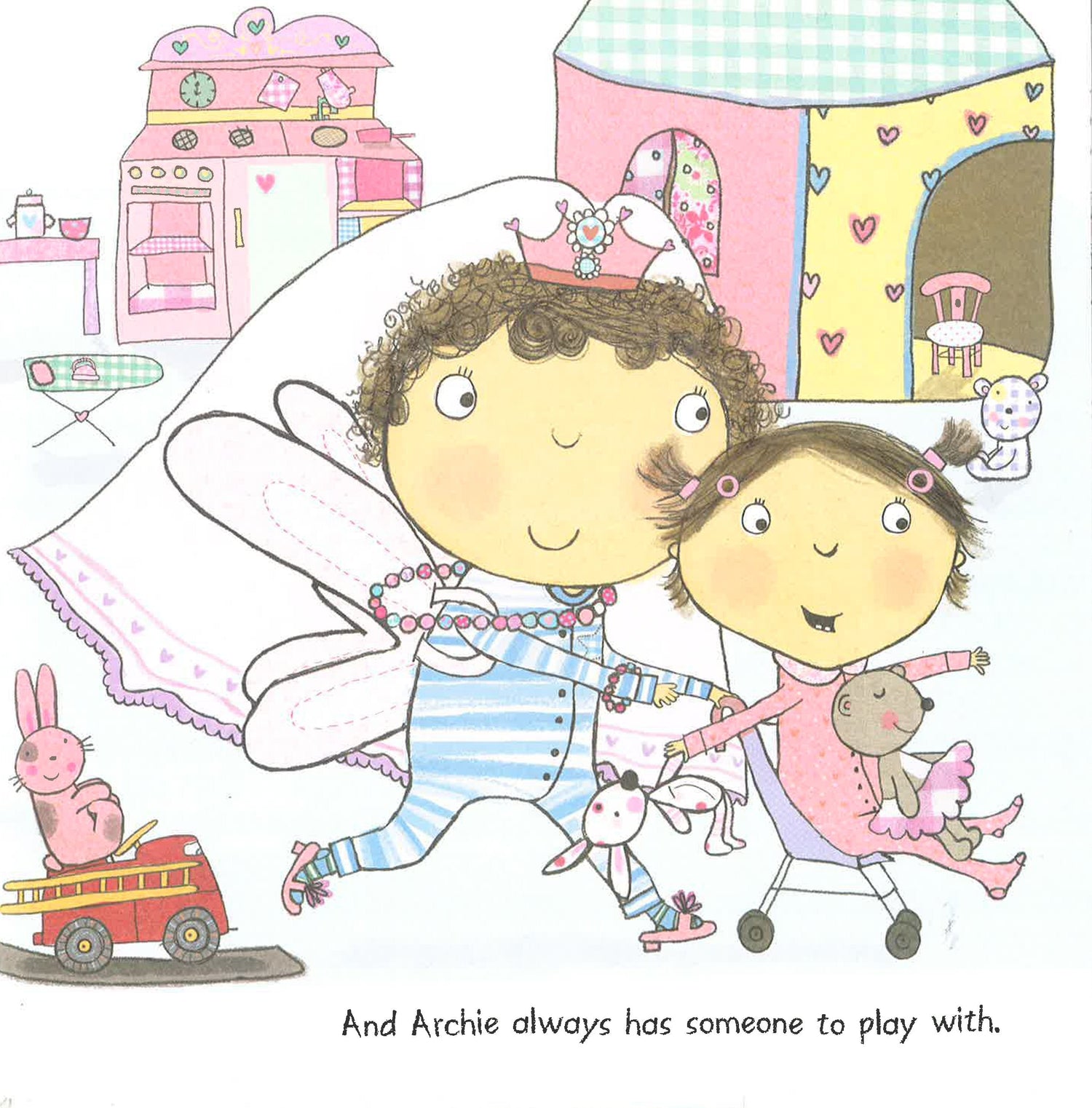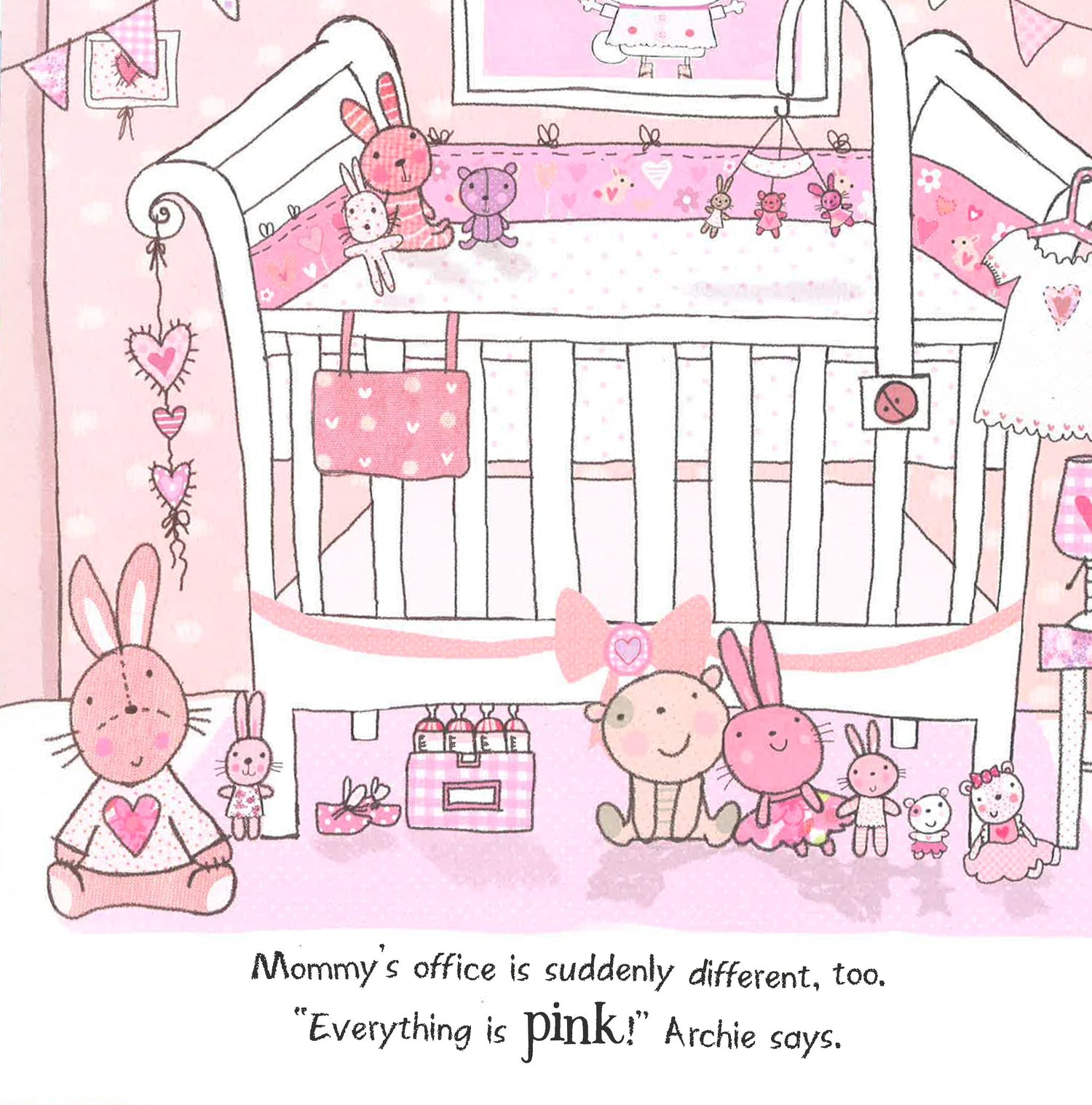 A sweet, humorous picture book for all new brothers and sisters who are anticipating the arrival of a new sibling. When Archie notices his Mommy's tummy growing, he knows something strange is happening. Not only that: Mommy's office is suddenly completely pink! Mommy shows Archie a picture of his sister growing in her tummy, but Archie things it looks like an alien. Archie isn't sure that he wants a baby sister. He likes cars and trains and playing cowboys. He knows for sure that he doesn't like fluffy, frilly, and very pink things! But soon, a fluffy, frilly, and very pink bundle arrives at home. It's his new baby sister, Olive! Big brother Archie thinks she looks like a marshmallow, and he wonders if life will ever be the same again.