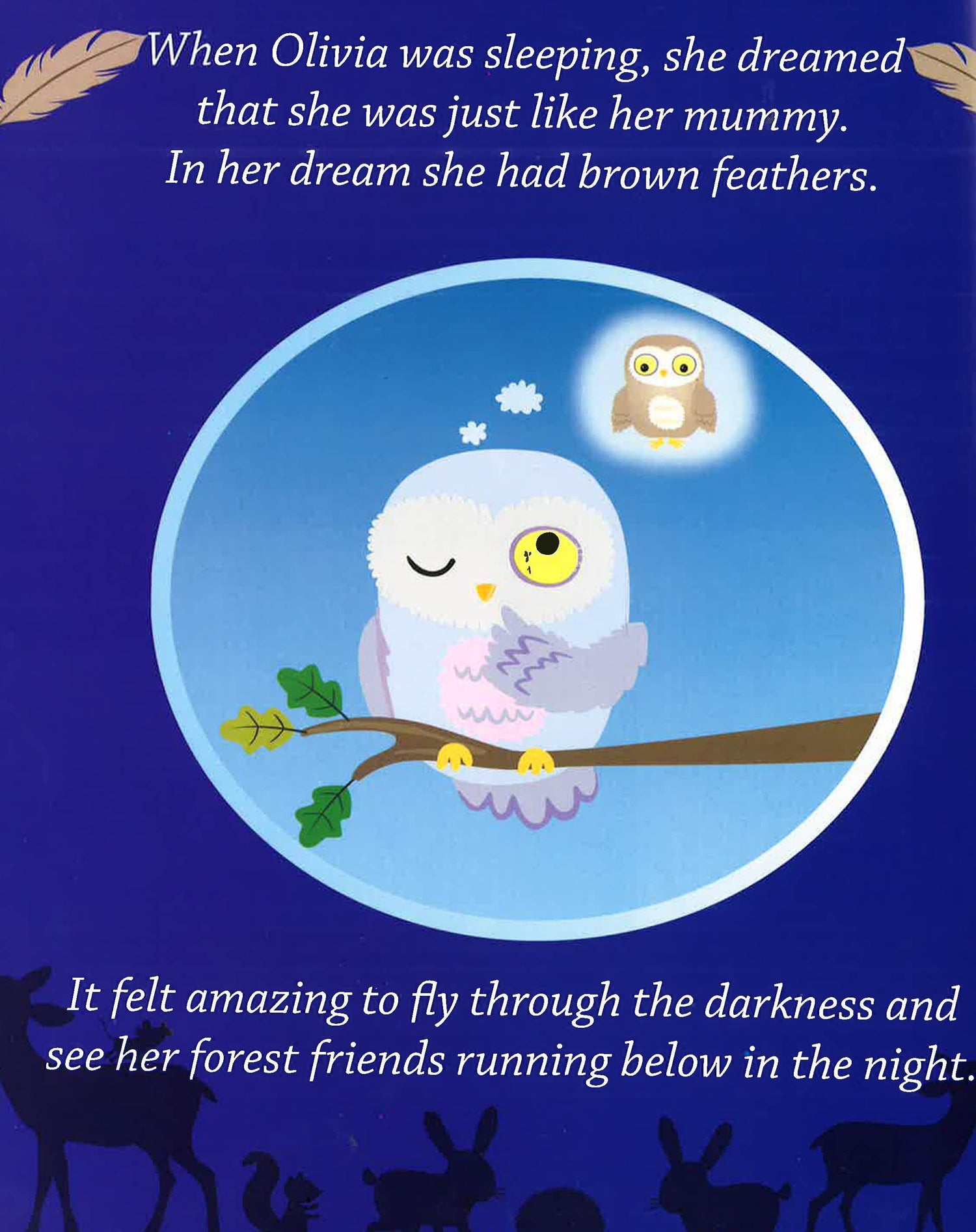 Olivia Owl wants to be just like her mummy, so she comes up with a plan. Soon she discovers that she would rather be herself, and that's just how her mummy loves her!