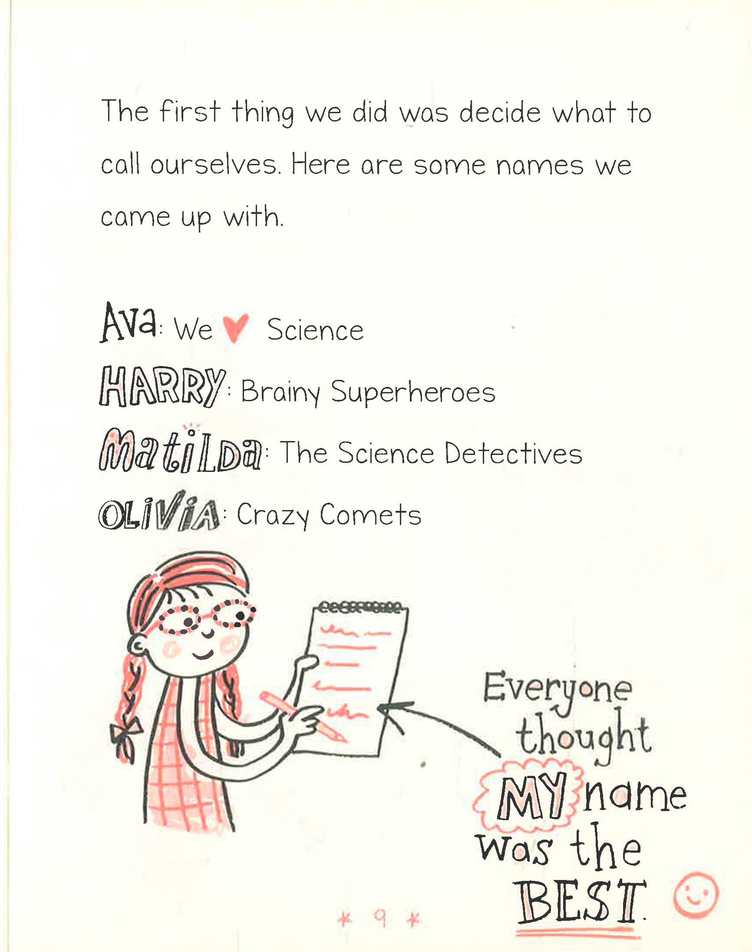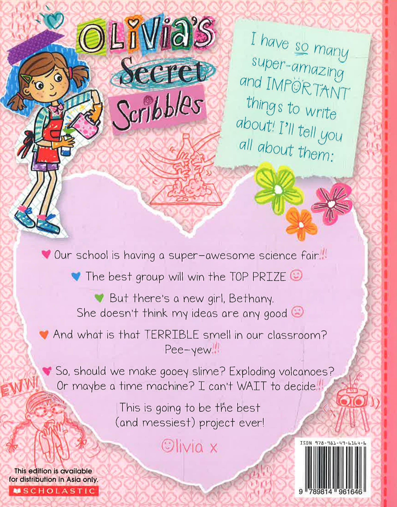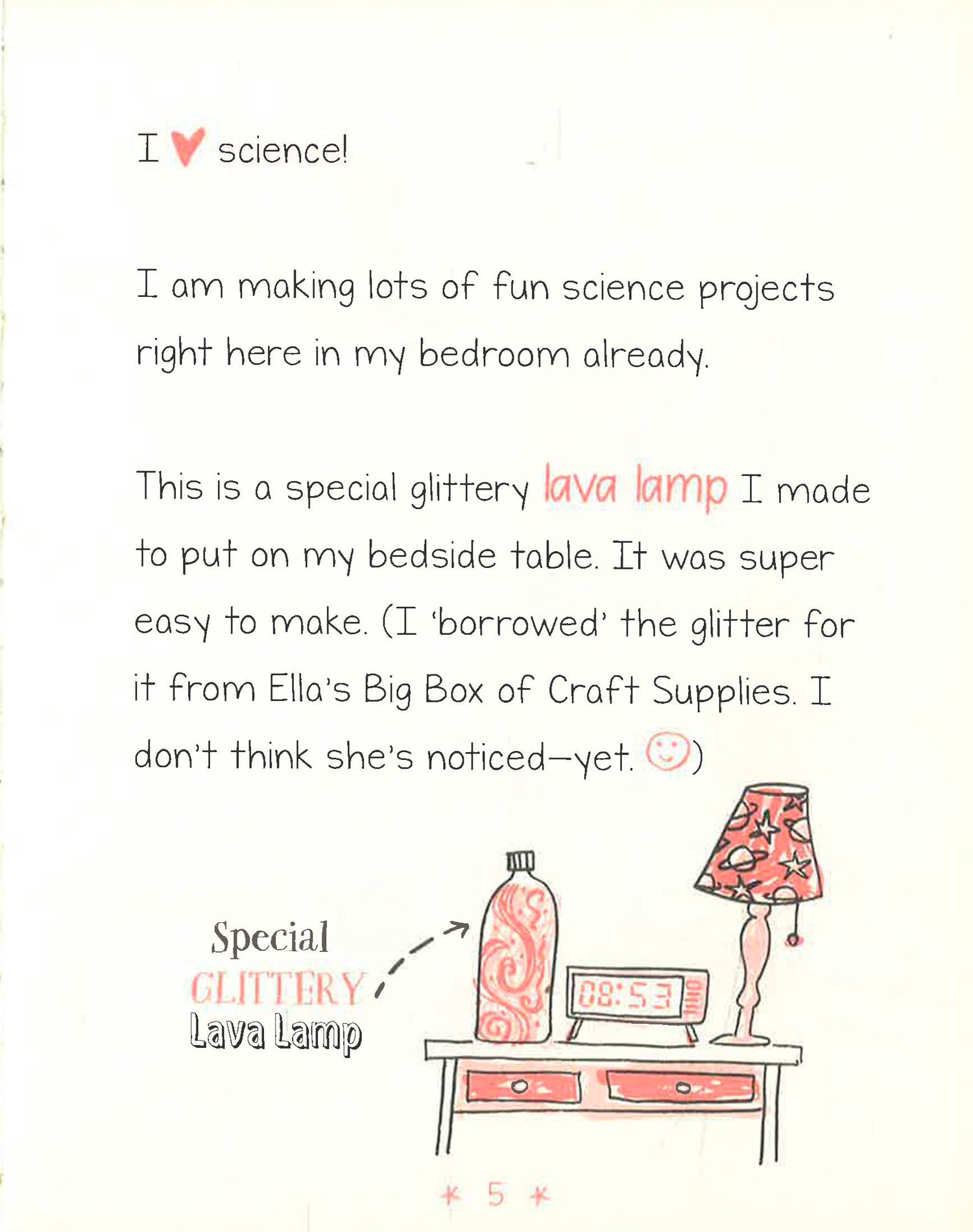 I have so many super-amazing and IMPORTANT things to write about! I’ll tell you all about them: Our school is having a Science Fair! And the best team will win a prize. There’s a new girl in my class! Her name is Bethany. Bethany keeps changing all my ideas for the Science Fair? I’ve been doing experiments with slimey gooey slime, exploding volcanoes and a sparkly glitter lamp! But what is that TERRIBLE smell in our classroom?! Pee-yew! We need to think of a super amazing experiment so we can win at the fair. But how are we all going to agree on which one to choose?