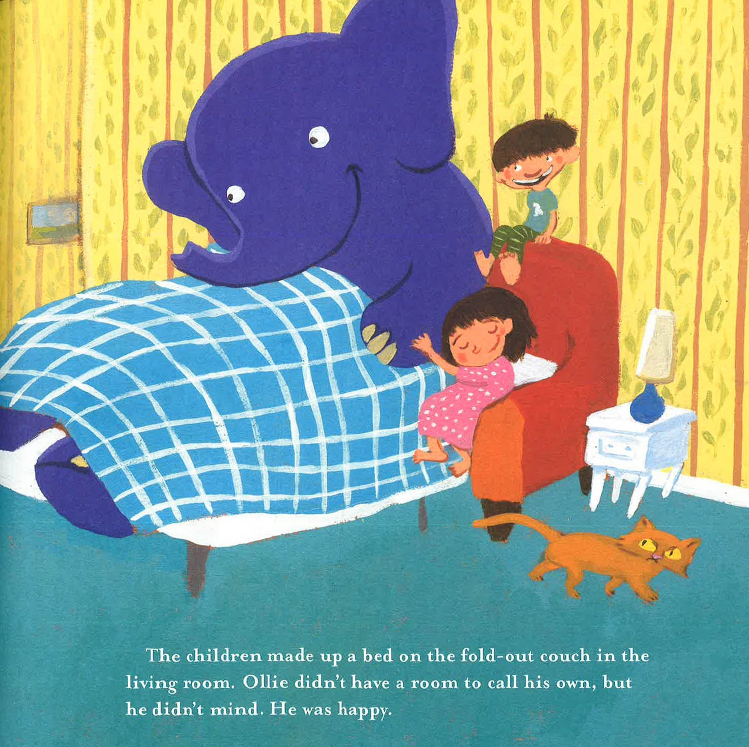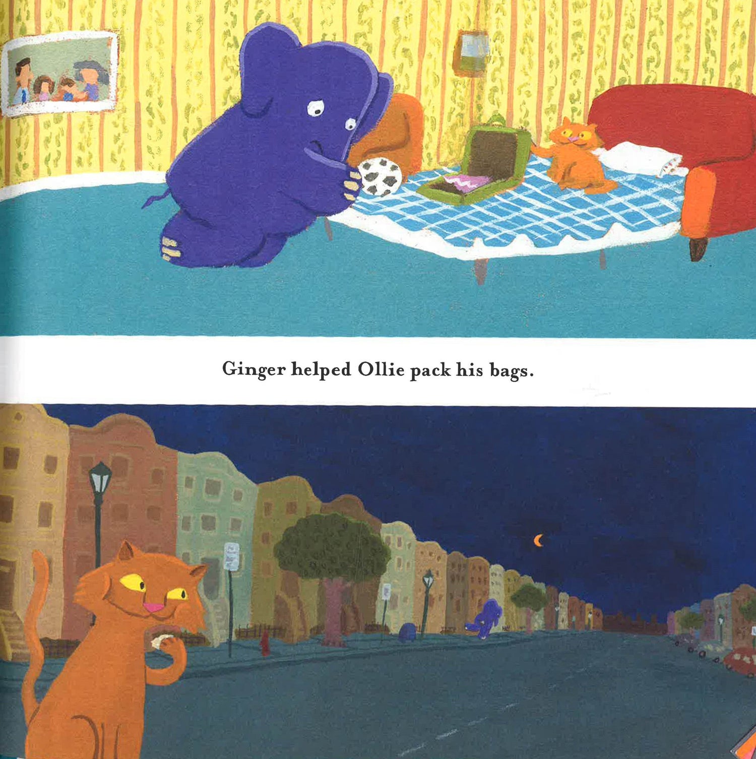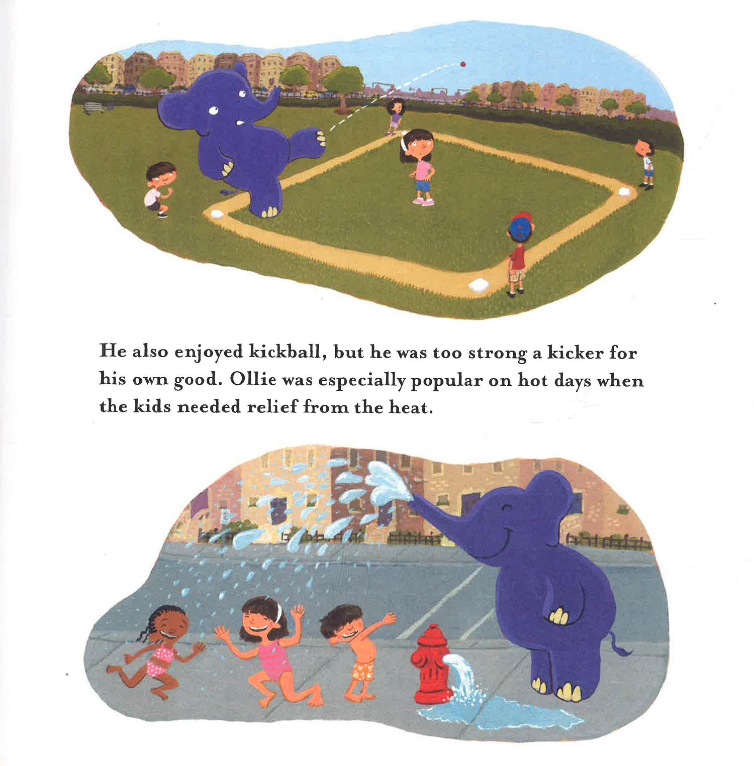 Ollie is a purple elephant who is lost and has no place to call home. Until Shelby and Peter find him in the park and invite him to live with them. Soon Ollie is a regular part of the family. He doesn't have a room to call his own, but he doesn't mind. He is happy. He loves hopscotch and kickball but most of all he loves the dance parties the McLaughlins have after dinner. But Mr. Puddlebottom, the downstairs neighbor, most certainly does not love Ollie. And neither does the McLaughlins' cat, Ginger. Ollie has taken her spot on the couch at night. When the conspirators hatch a plan to get rid of Ollie, the purple elephant walks right into their trap and onto a circus cart. Will he ever be reunited with his family?