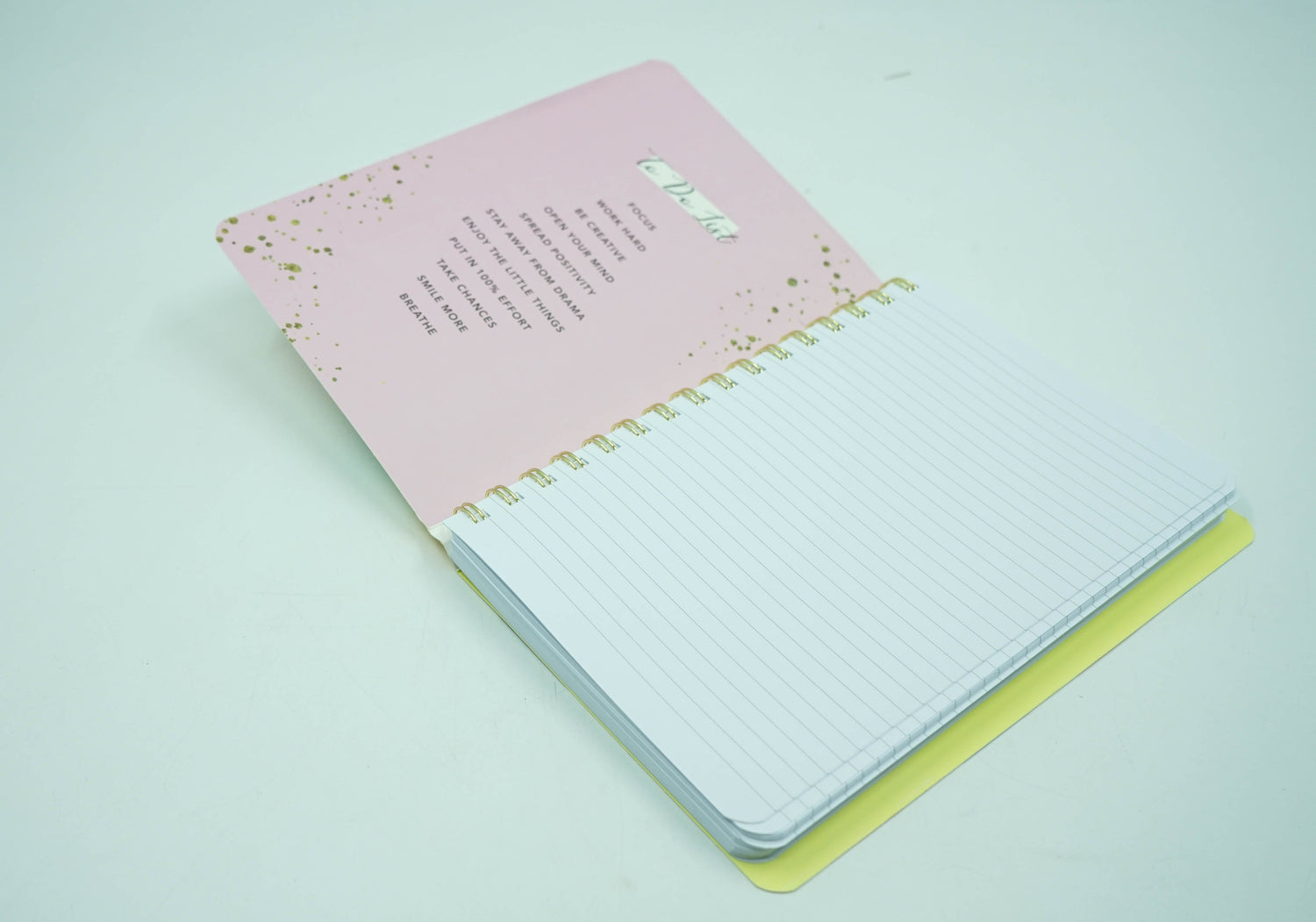 This gorgeous inspiring Journal features an enclosed spiral design, making it so easy to take notes on the go. Take it to meetings or keep on your desk for everyday notes and ideas. Jot down your important notes, dreams, ideas and thoughts anywhere you need with this journal. - Measures 210mm H X 143mm L - 100 ruled pages and 100 blank pages in 80gsm simile paper - Featuring spot UV lettering on cover
