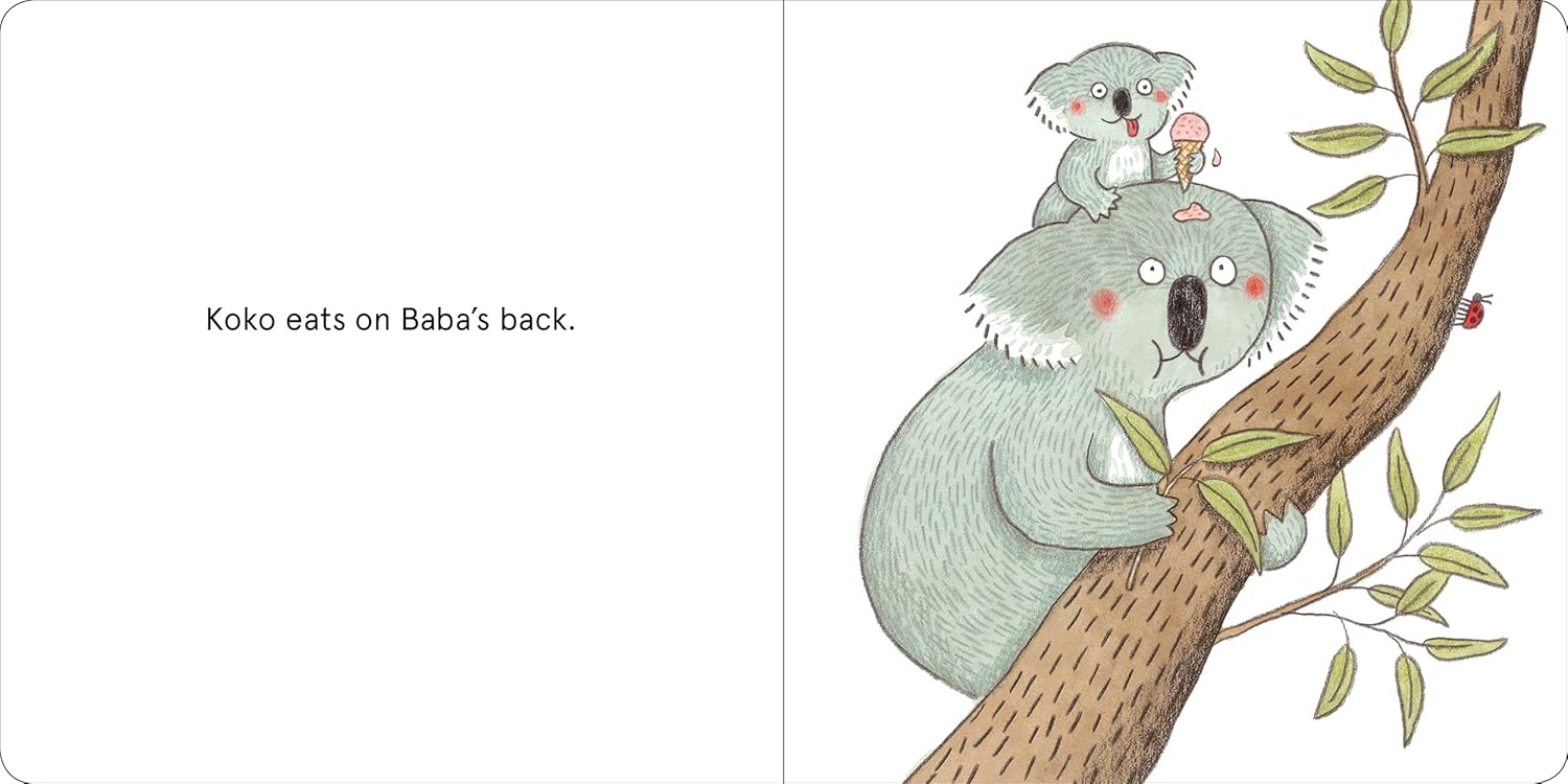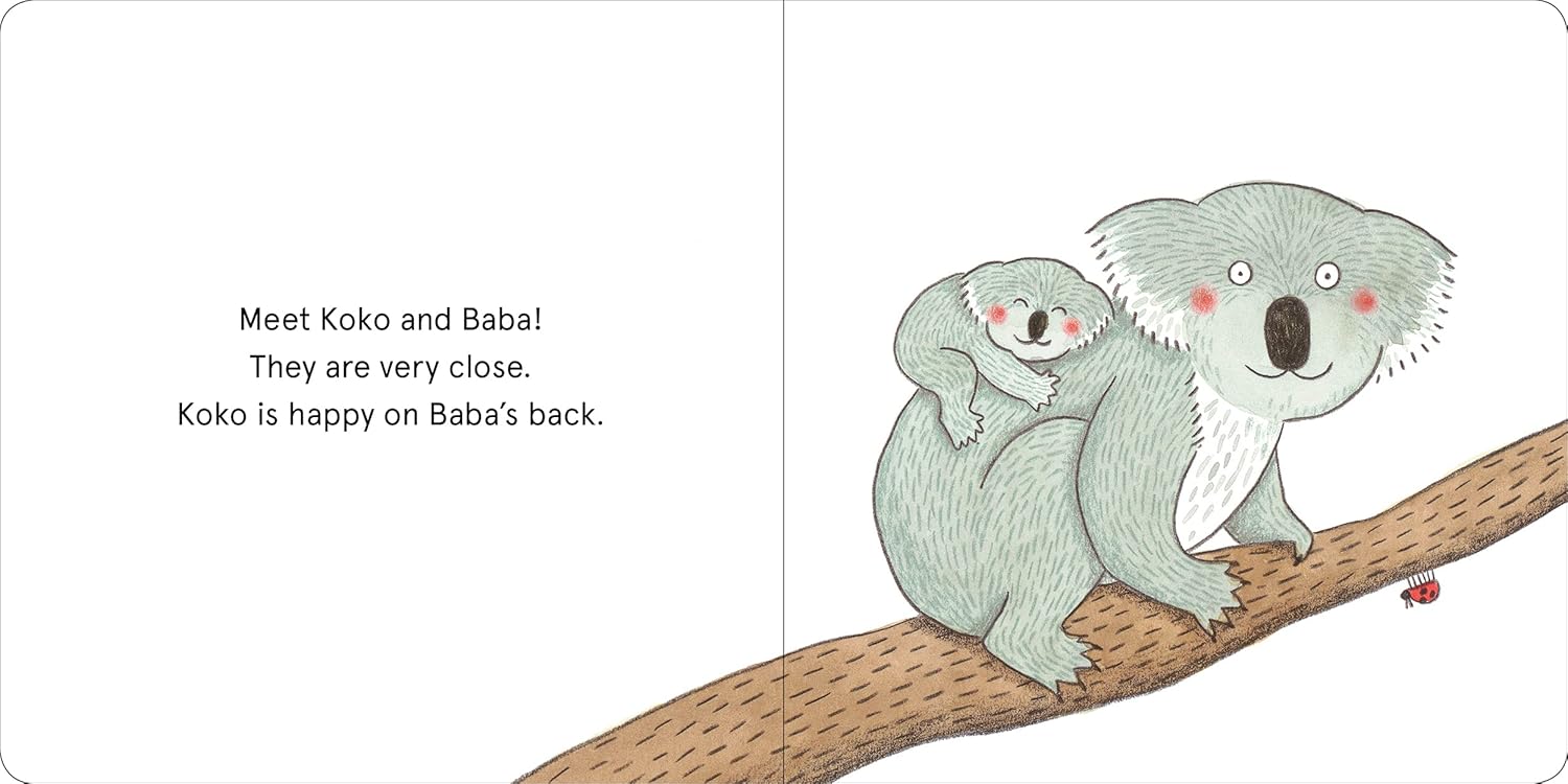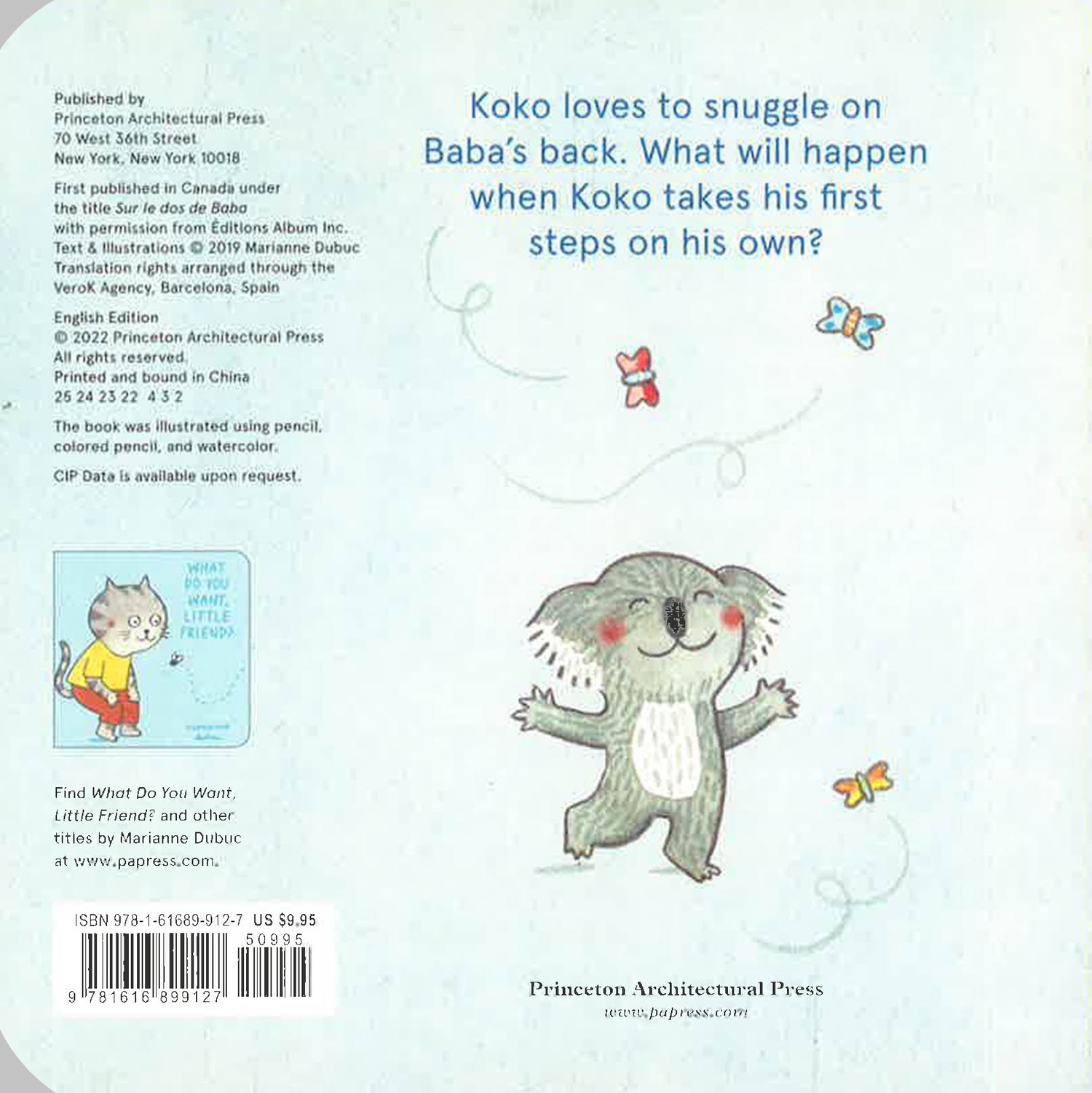 Koko and Baba are a very close koala family, so close that Koko does everything on Baba's back—eats, plays, you name it! Until one day, when Koko wants to do something different, and he takes his first step off Baba's back to go explore. Families will love snuggling up together to read this sweet tale of togetherness, just like Koko and Baba as they curl up at the end of the night to celebrate Koko's big day.
