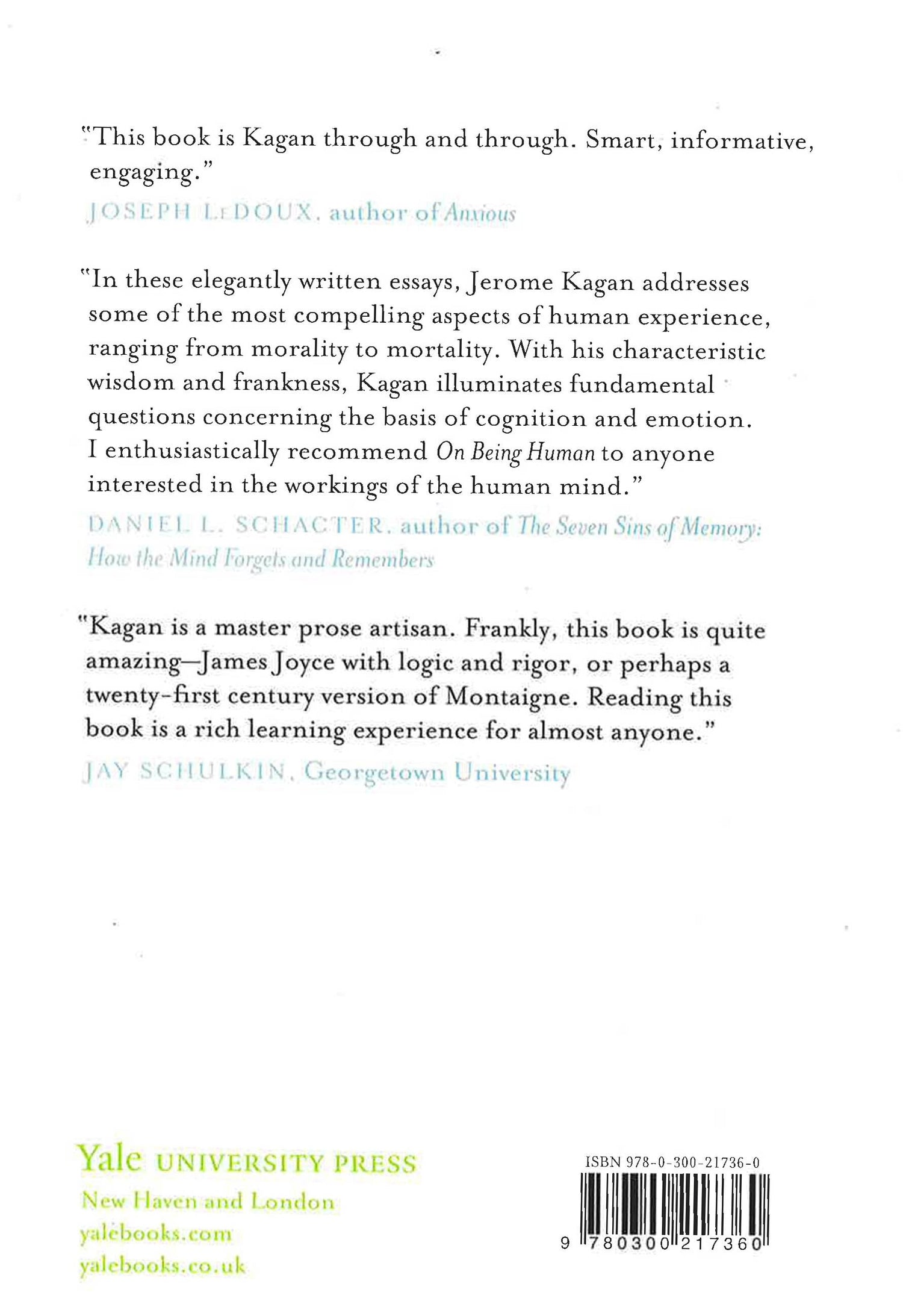A revered psychologist invites us to re-examine our thinking about controversial contemporary issues, from the genetic basis for behaviors to the functions of education. In this thought-provoking book, psychologist Jerome Kagan urges readers to sally forth from their usual comfort zones. He ponders a series of important nodes of debate while challenging us to examine what we know and why we know it. Most critically he presents an elegant argument for functions of mind that cannot be replaced with sentences about brains while acknowledging that mind emerges from brain activity. Kagan relies on the evidence to argue that thoughts and emotions are distinct from their biological and genetic bases. In separate chapters he deals with the meaning of words, kinds of knowing, the powerful influence of social class, the functions of education, emotion, morality, and other issues. And without fail he sheds light on these ideas while remaining honest to their complexity. Thoughtful and eloquent, Kagan's On Being Human places him firmly in the tradition of Renaissance essayist Michel de Montaigne, whose appealing blend of intellectual insight, personal storytelling, and careful judgment has attracted readers for centuries.