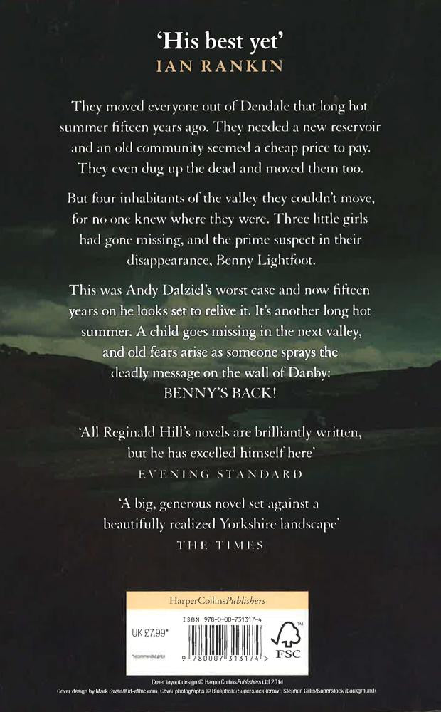They needed a new reservoir and an old community seemed a cheap price to pay. But four inhabitants of the valley could not be moved, for nobody knew where they were: three little girls who had gone missing, and the prime suspect in their disappearance, Benny Lightfoot. This was Andy Dalziel's worst case and now he looks set to relive it. Another child goes missing in the next valley, and old fears arise as someone sprays the deadly message on Danby bridge: BENNY'S BACK!