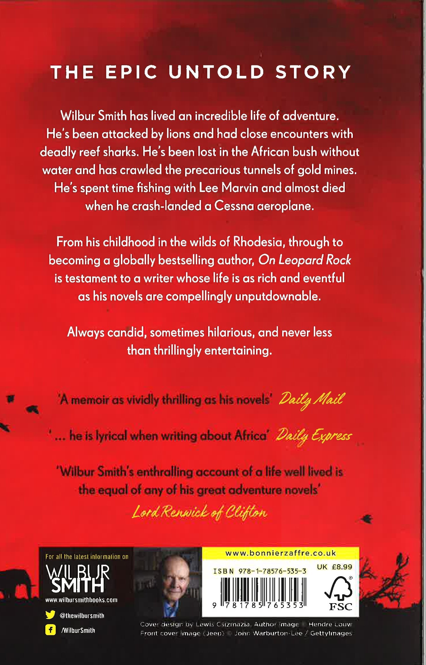 Wilbur Smith has lived an incredible life of adventure, and now he shares the extraordinary true stories that have inspired his fiction. I've been writing novels for over fifty years. I was lucky enough to miss the big wars and not get shot, but lucky enough to grow up among the heroes who had served in them and learn from their example. I have lucked into things continuously. I have done things which have seemed appalling at the time, disastrous even, but out of them has come another story or a deeper knowledge of human character and the ability to express myself better on paper and write books which people enjoy reading. Along the way, I have lived a life that I could never have imagined. I have been privileged to meet people from all corners of the globe, I have been wherever my heart has desired and in the process my books have taken readers to many, many places. I always say I've started wars, I've burned down cities and I've killed hundreds of thousands of people - but only in my imagination! From being attacked by lions to close encounters with deadly reef sharks, from getting lost in the African bush without water to crawling the precarious tunnels of gold mines, from marlin fishing with Lee Marvin to near death from crash-landing a Cessna aeroplane, from brutal school days to redemption through writing and falling in love, Wilbur Smith tells us the intimate stories of his life that have been the raw material for his fiction. Always candid, sometimes hilarious and never less than thrillingly entertaining, On Leopard Rock is testament to a writer whose life is as rich and eventful as his novels are compellingly unputdownable.