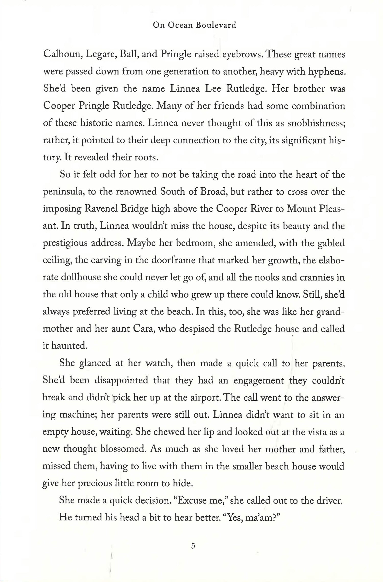 Meanwhile, the rest of the storied Rutledge family is also in flux. Cara’s niece Linnea returns to Sullivan’s Island to begin a new career and an unexpected relationship. Linnea’s parents, having survived bankruptcy, pin their hopes and futures on the construction of a new home on Ocean Boulevard. But as excitement over the house and wedding builds, a devastating illness strikes the family and brings plans to a screeching halt. It is under these trying circumstances that the Rutledge family must come together yet again to discover the enduring strength in love, tradition, and legacy from mother to daughter to granddaughter.