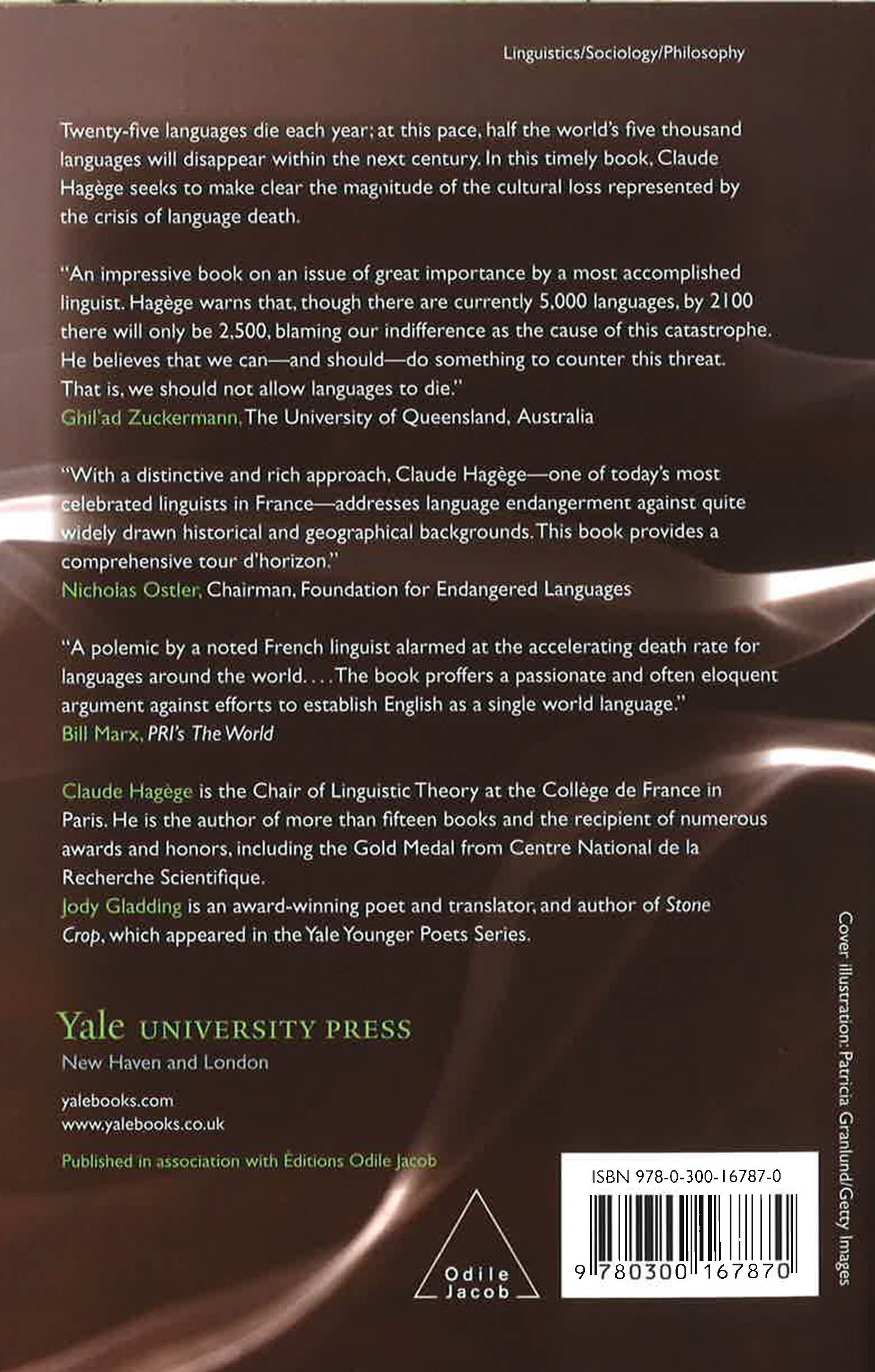 Twenty-five languages die each year; at this pace, half the world's five thousand languages will disappear within the next century. In this timely book, Claude Hagege seeks to make clear the magnitude of the cultural loss represented by the crisis of language death. By focusing on the relationship of language to culture and the world of ideas, Hagege shows how languages are themselves crucial repositories of culture; the traditions, proverbs, and knowledge of our ancestors reside in the language we use. His wide-ranging examination covers all continents and language families to uncover not only how languages die, but also how they can be revitalized-for example in the remarkable case of Hebrew. In a striking metaphor, Hagege likens languages to bonfires of social behavior that leave behind sparks even after they die; from these sparks languages can be rekindled and made to live again.