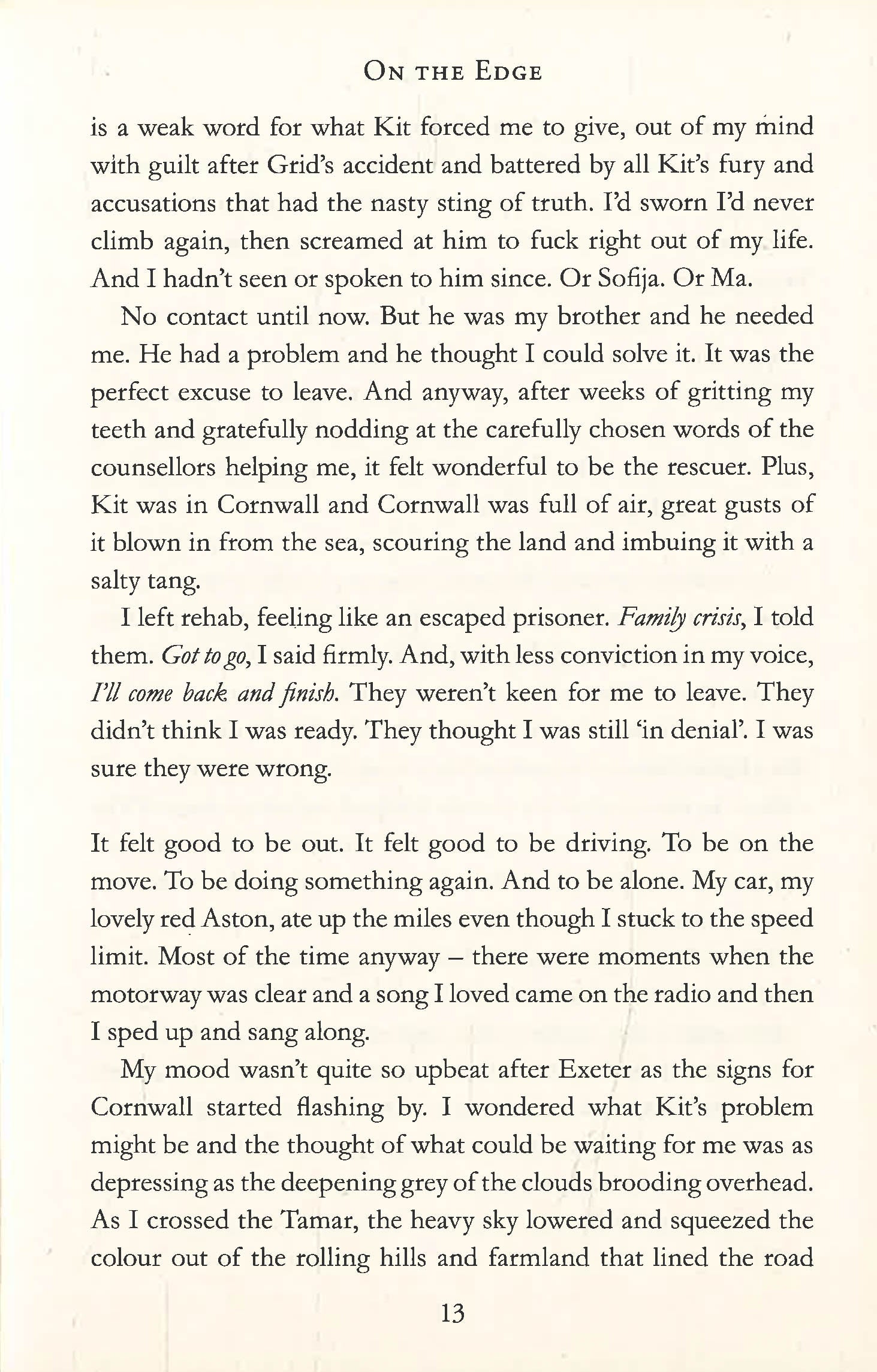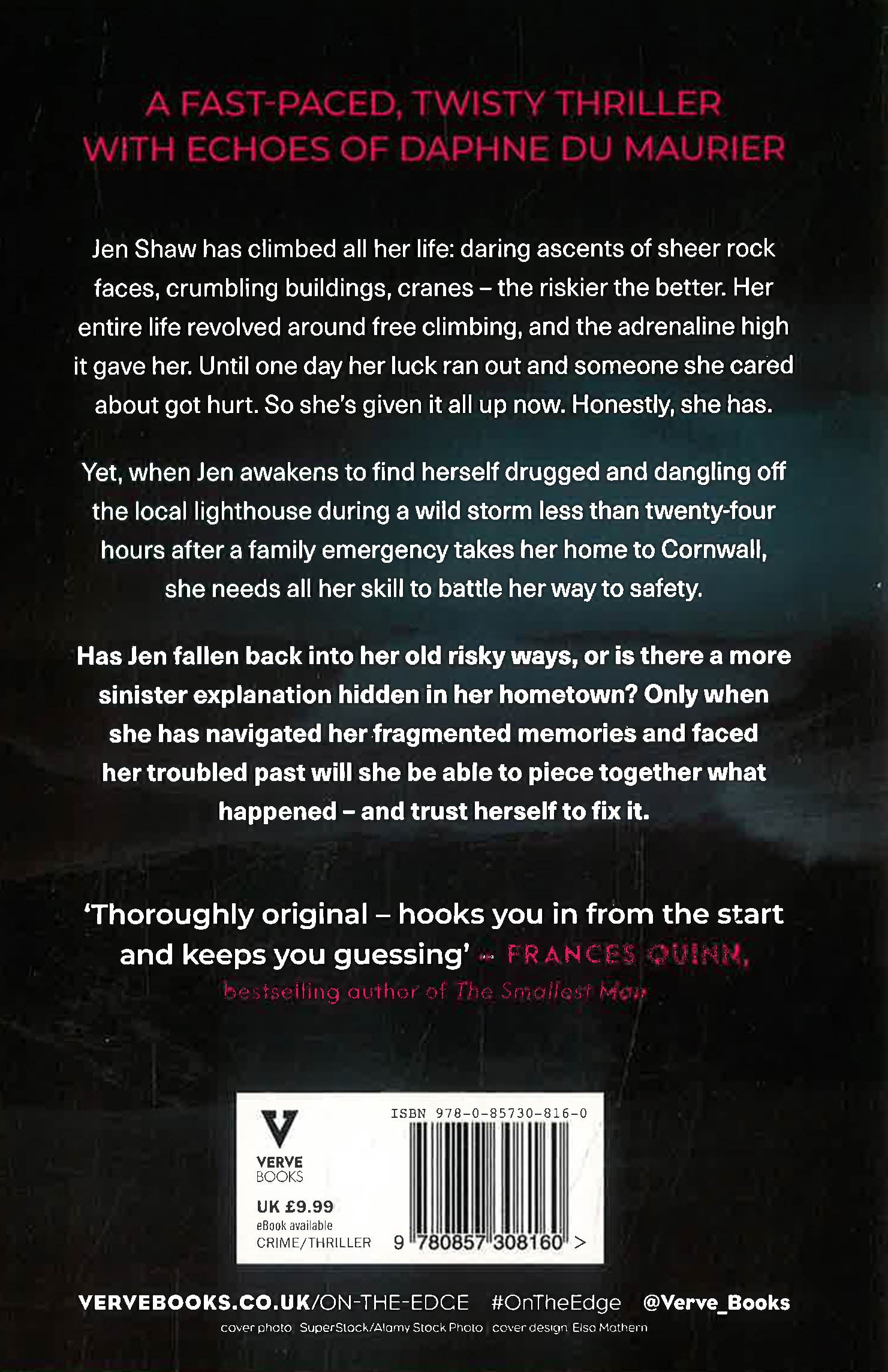Jen Shaw has climbed all her life: daring ascents of sheer rock faces, crumbling buildings, cranes - the riskier the better. Both her work and personal life revolved around climbing, and the adrenaline high it gave her. Until she went too far and hurt the people she cares about. So she's given it all up now. Honestly, she has. And she's checked herself into a rehab centre to prove it.