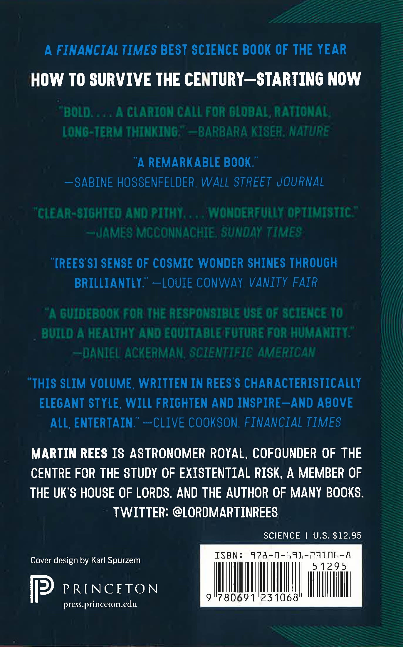 Humanity has reached a critical moment. Our world is unsettled and rapidly changing, and we face existential risks over the next century. Various outcomes―good and bad―are possible. Yet our approach to the future is characterized by short-term thinking, polarizing debates, alarmist rhetoric, and pessimism. In this short, exhilarating book, renowned scientist and bestselling author Martin Rees argues that humanity’s prospects depend on our taking a very different approach to planning for tomorrow.