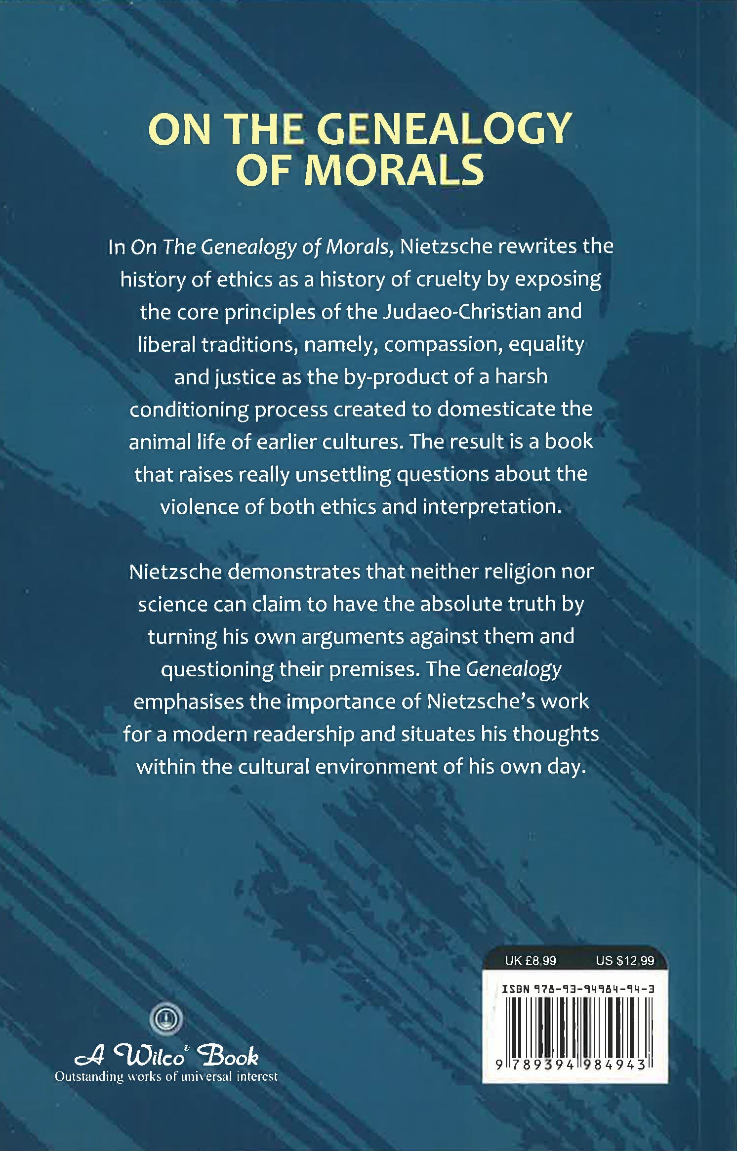 Nietzsche claimed that the purpose of The Genealogy of Morals was to call attention to his previous writings. But in fact the book does much more than that, elucidating and expanding on the cryptic aphorisms of Beyond Good and Evil and signalling a return to the essay form. In these three essays, Nietzsche considers the development of ideas of 'good' and 'evil'; explores notions of guilt and bad consience; and discusses ascetic ideals and the purpose of the philosopher. Together, they form a coherent and complex discussion of morality in a work that is more accessible than some of Nietzsche's previous writings.