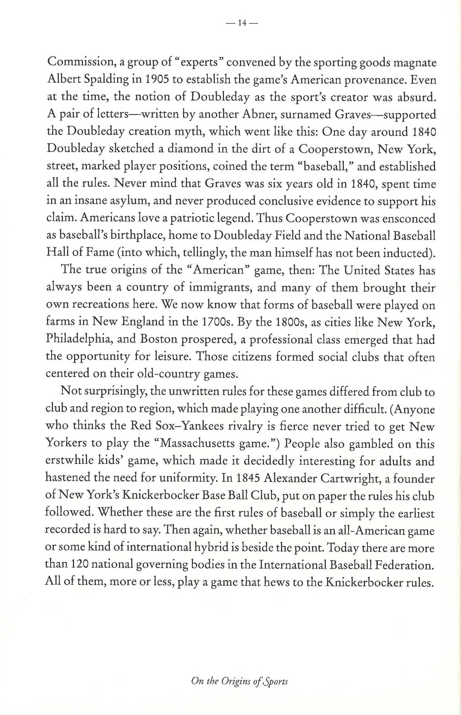 Did you know that James Naismith invented basketball as a way to keep his students indoors during the cold Massachusetts winter? Or that many of the Southerners who began racing stock cars got their early driving experience escaping police while running moonshine? On the Origins of Sports is jam packed with these compelling tidbits of information tailor made for obsessive sports fans, and covers a wide range of sports whether national pastimes like football and cricket or global obsessions such as soccer and basketball. Each sport has its own chapter, which includes the sport's original rules; a short history of the sport in accessible, insightful text; and informative line illustrations. Also included are annotated interstitials that take a deeper look into an element of the sport: for example, the evolution of the baseball glove; sports with war roots; a compendium of sports balls; iconic sports trophies; and more. Aside from facts and figures, rules and history, On the Origins of Sports is a book that sports enthusiasts and history buffs alike will want to display on their coffee tables, showcase on their bookshelves, and treasure for generations.