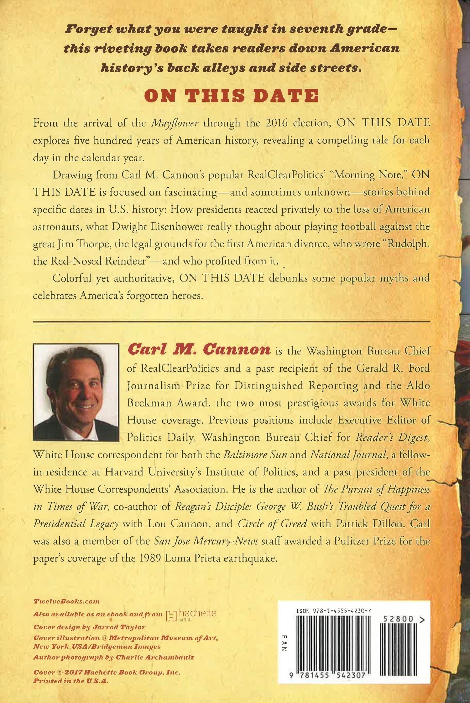 From the Boston Tea Party through the 2016 election, ON THIS DATE takes readers through five hundred years of American history, one day at a time. Drawing from Carl Cannon's popular RealClearPolitics Morning Note, ON THIS DATE is formatted around fascinating-and sometimes unknown-stories behind specific dates in US history. Stories like how Eisenhower spent the night before D-Day, why Lincoln lost the Lincoln Douglas debates, and where Baby Ruth candy bars get their name. In the spirit of Kenneth Davis's Don't Know Much About History and the History Channel's 10 Days that Unexpectedly Changed America, ON THIS DATE offers a colorful alternative history that debunks some popular myths and celebrates America's forgotten heroes.