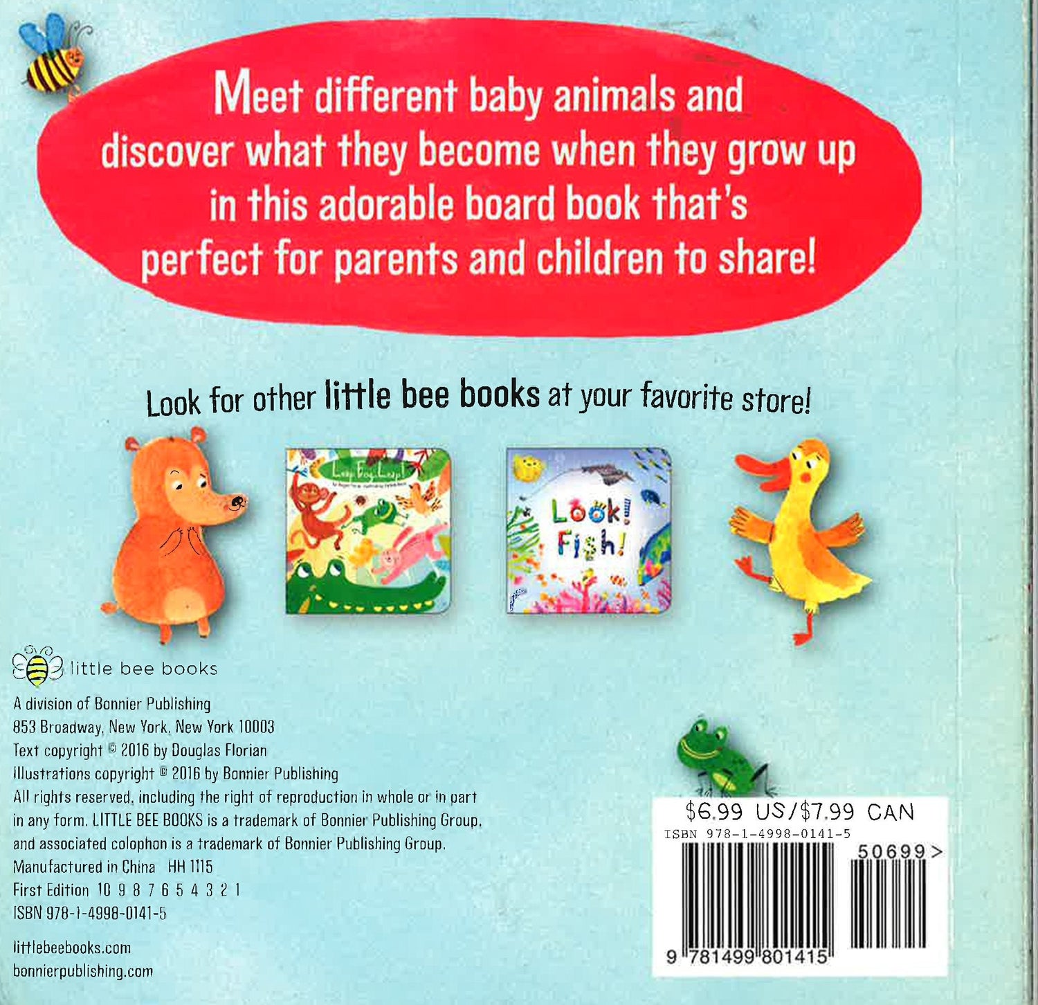 Discover what these baby animals become when they grow up in this sweet board book by award-winning author Douglas Florian. Once I was a pollywog, but now I am a frog. Once I was a piglet, but now I am a hog. In this fun, rhyming story by award-winning author Douglas Florian, meet different baby animals and discover what they become when they grow up! The baby/adult pairs include: pollywog/frog; piglet/hog; cub/bear; leveret/hare; gosling/goose; calf/moose. And at the end, meet a little boy who will always be his mama's bundle of joy!