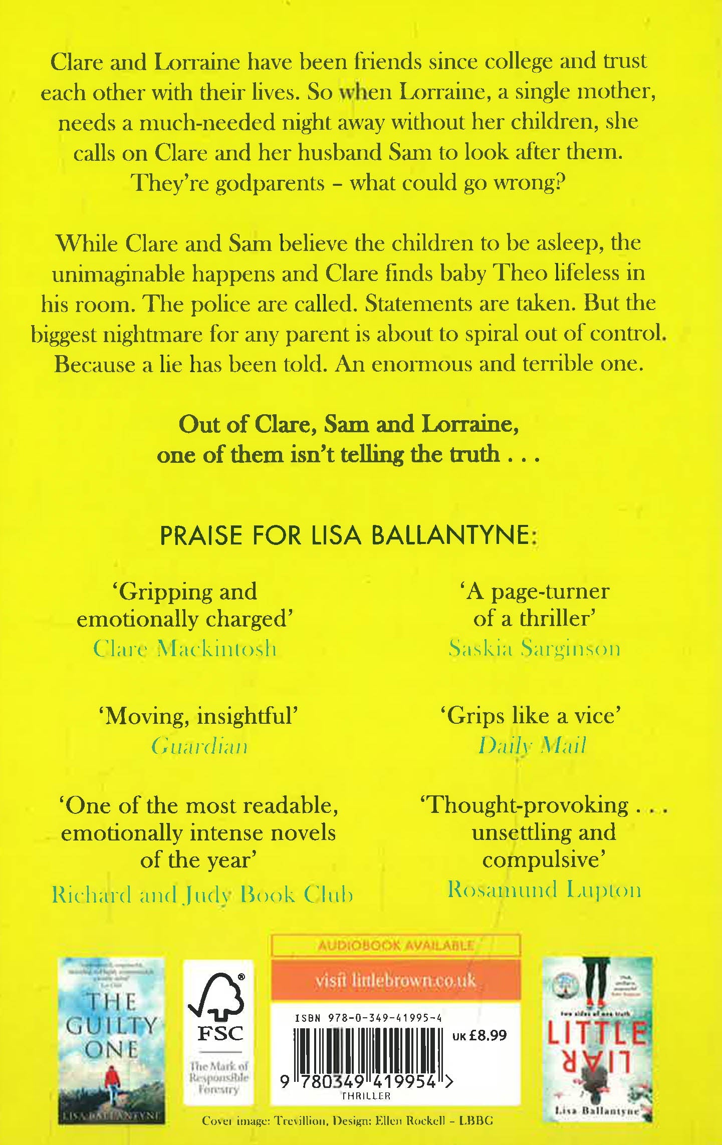 While Clare and Sam believe the children to be asleep, the unimaginable happens and Clare finds baby Theo lifeless in his room. The police are called. Statements are taken. But the biggest nightmare for any parent is about to spiral out of control.