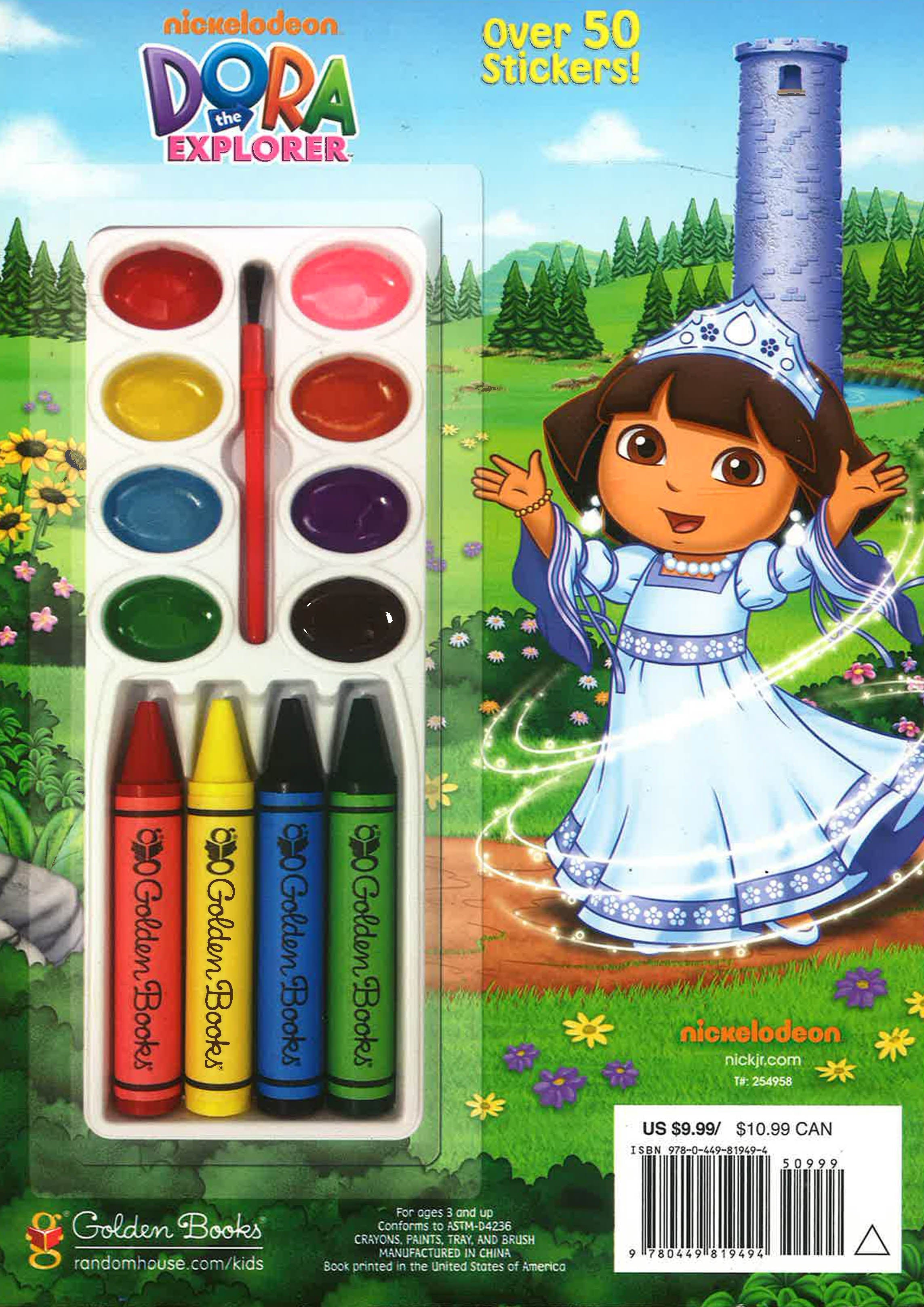 Fans of Nickelodeon's "Dora the Explorer" can now paint and color in one book! Girls ages 3 7 will have a blast with this deluxe coloring and painting book that includes four chunky crayons, eight watercolors, and a sturdy paintbrush."