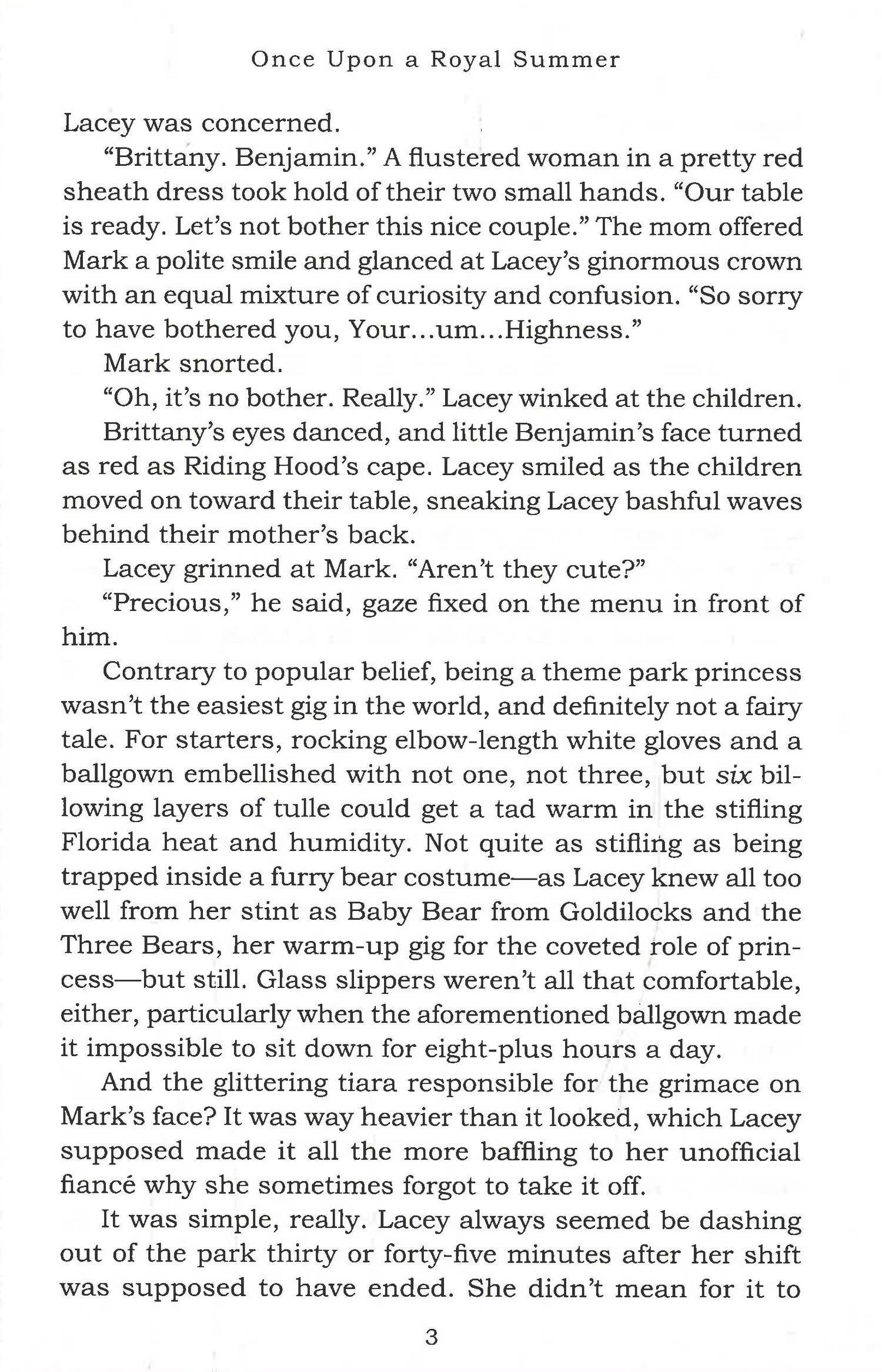 Lacey found her dream job: playing a princess character at a popular fairytale theme park in sunny southern Florida. Her diamond tiara might not be real, but the smiles of the children she meets every day certainly are. It’s just too bad that her ex-boyfriend was never impressed with her career choice.