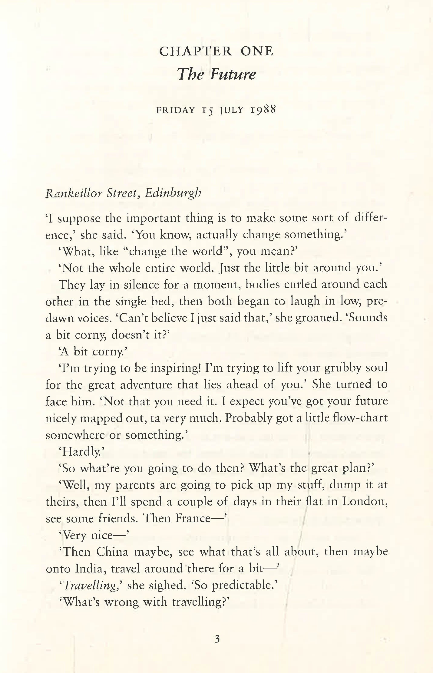 15th July 1988. Emma and Dexter meet for the first time on the night of their graduation. Tomorrow they must go their separate ways.